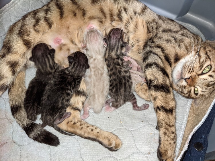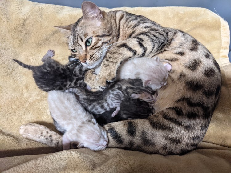 Lily has been with us since the beginning. She has been a stellar mom, always raising healthy kittens. She always bounced back quickly from pregnancy and enjoyed being a mom, but it’s time for her to retire as a pampered pet.