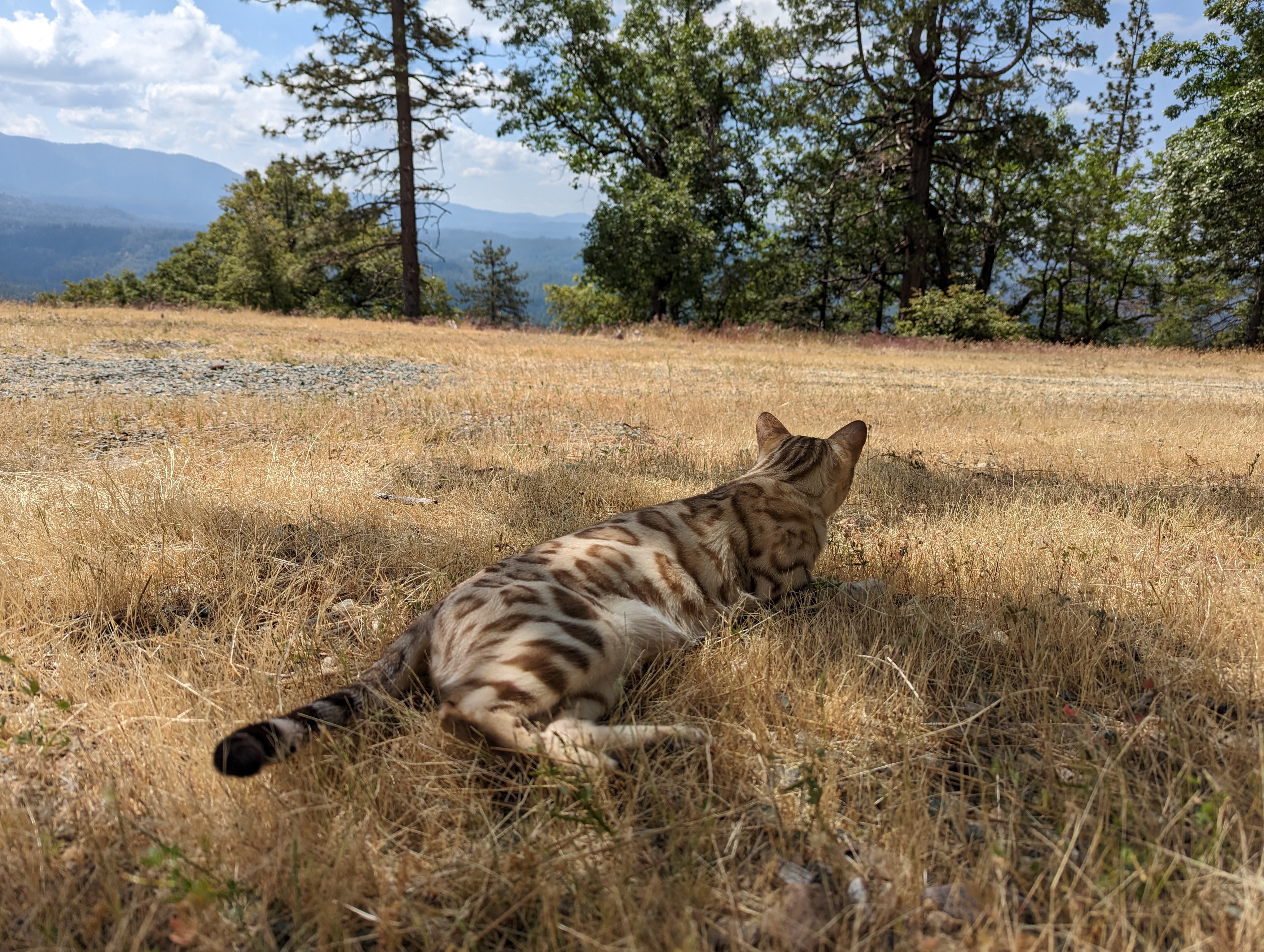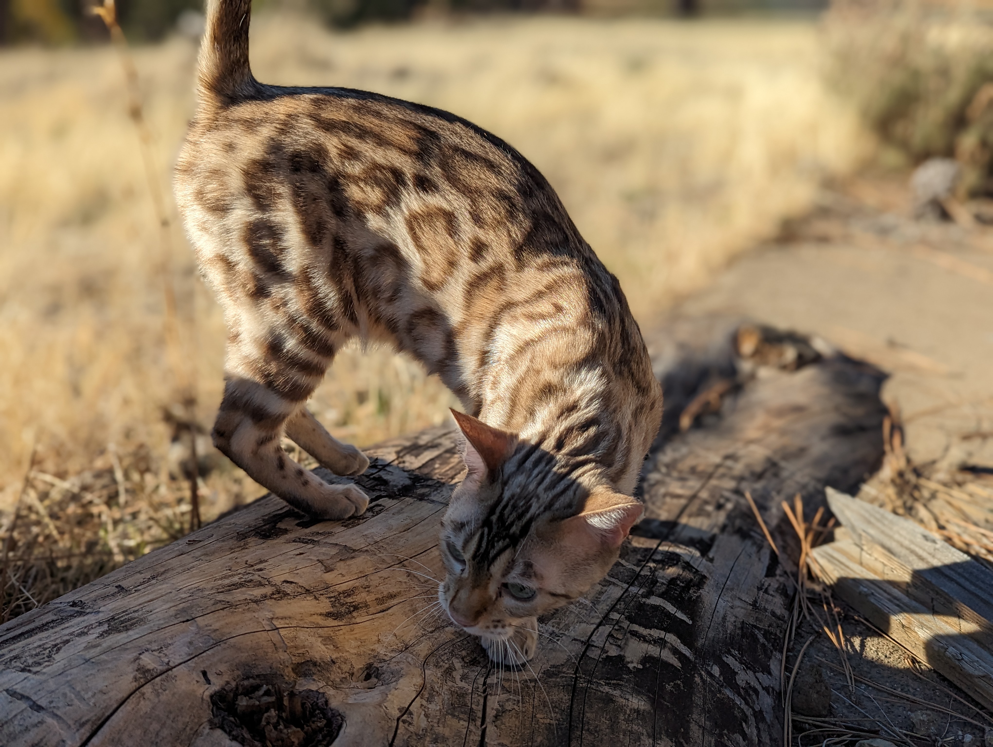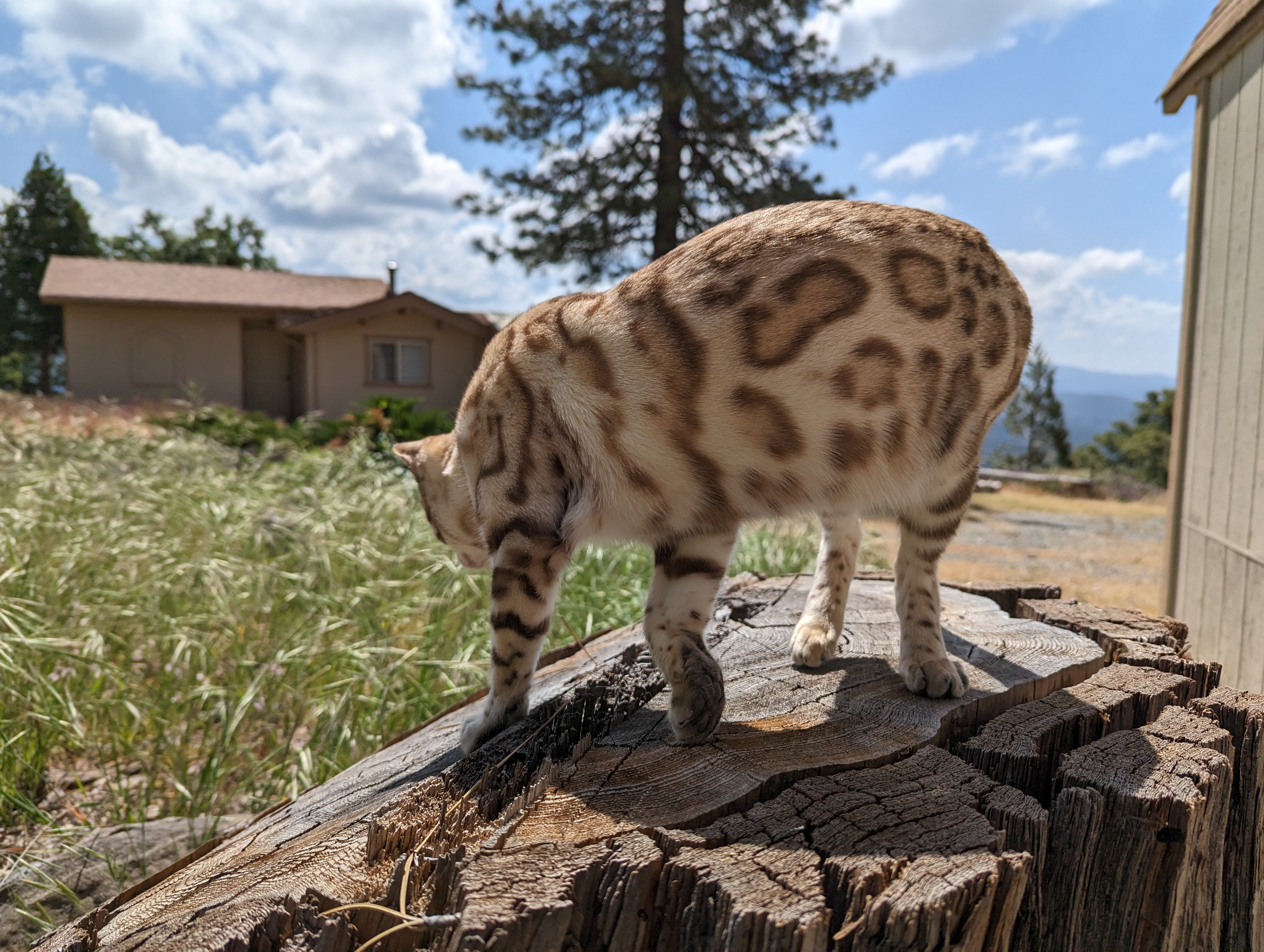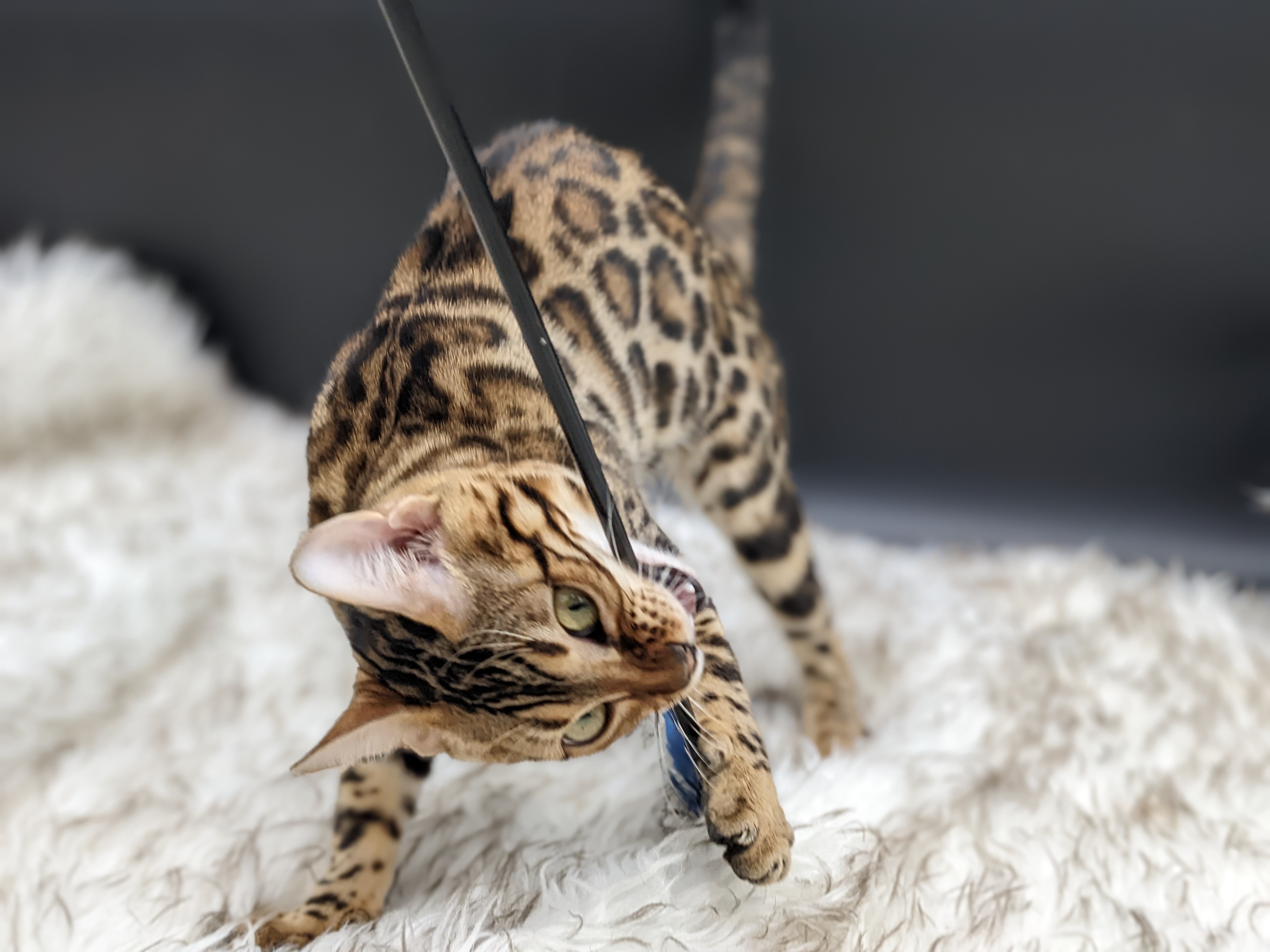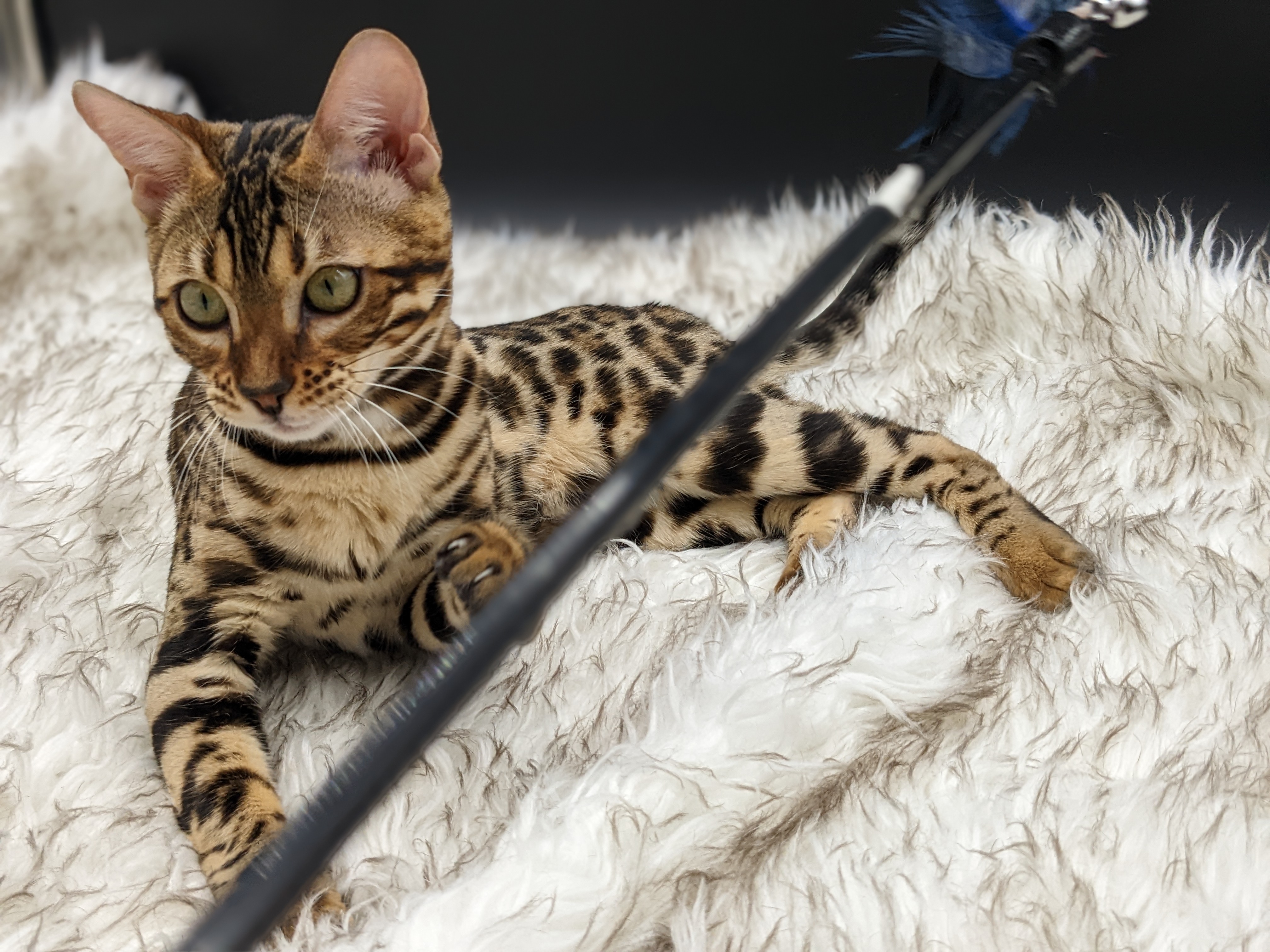 Ree is full sister to Roo. Ree also has that great horizontal flow she got from her mom, Rainforest Chim Chimeree. Ree carries one of the genetic components needed to produce charcoal patterned offspring. She is incredibly sweet and soft spoken. She likes being carried around and will happily purr away when you hold her like a baby. We love the look of her muzzle and she also has a checkered tail! We're very excited to see what she produces with the right male.