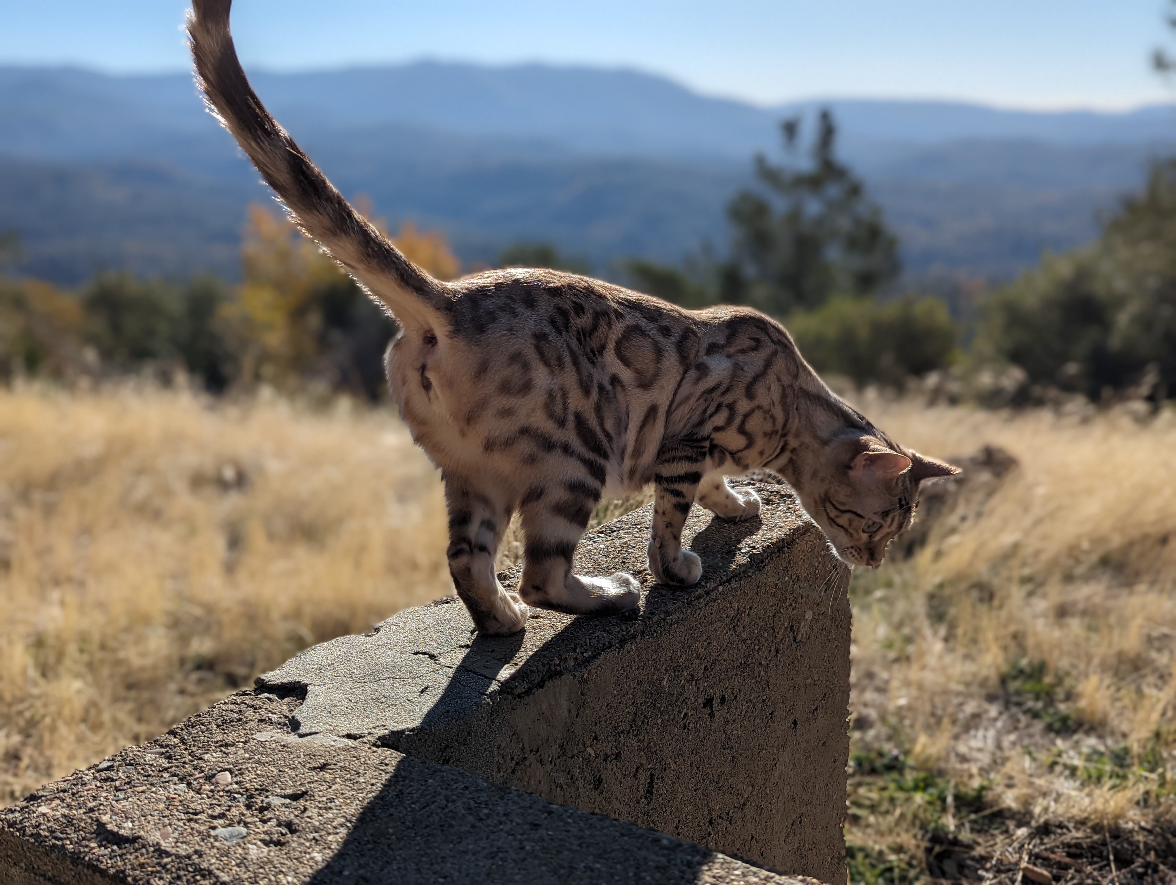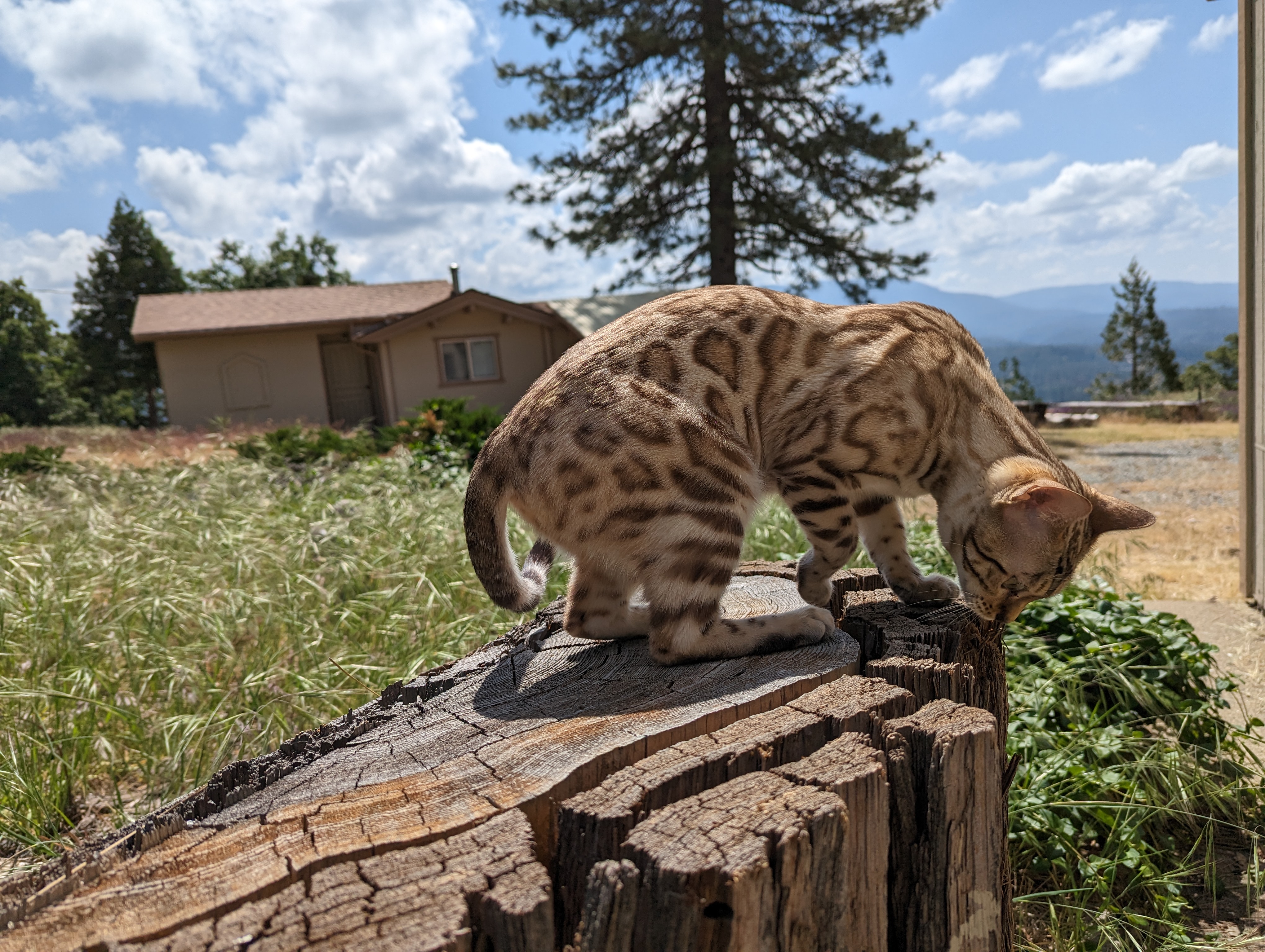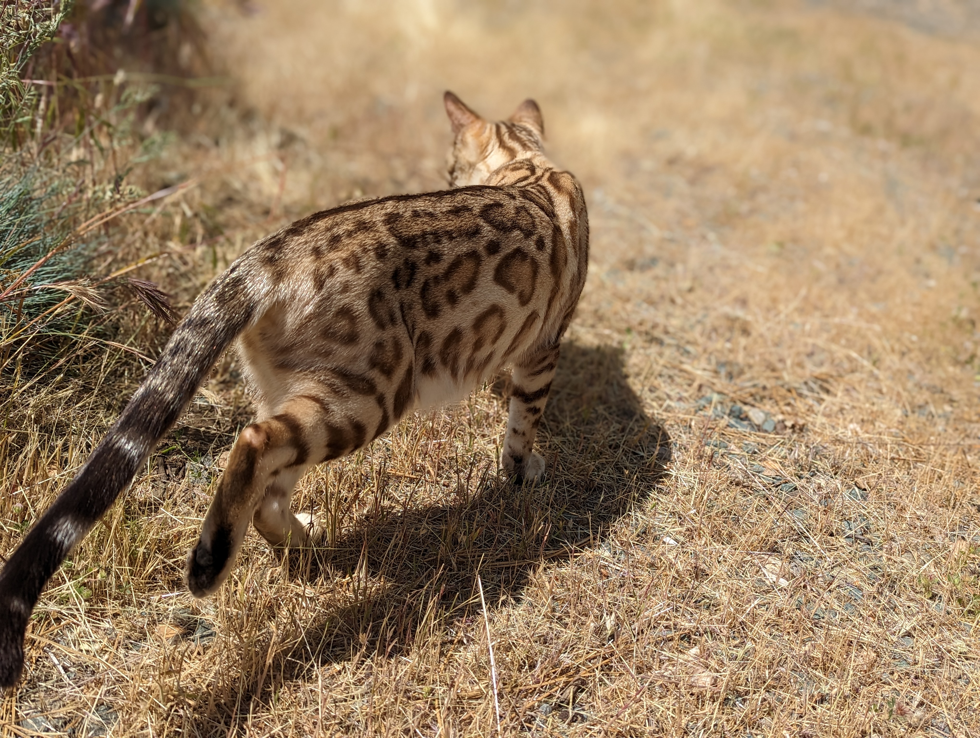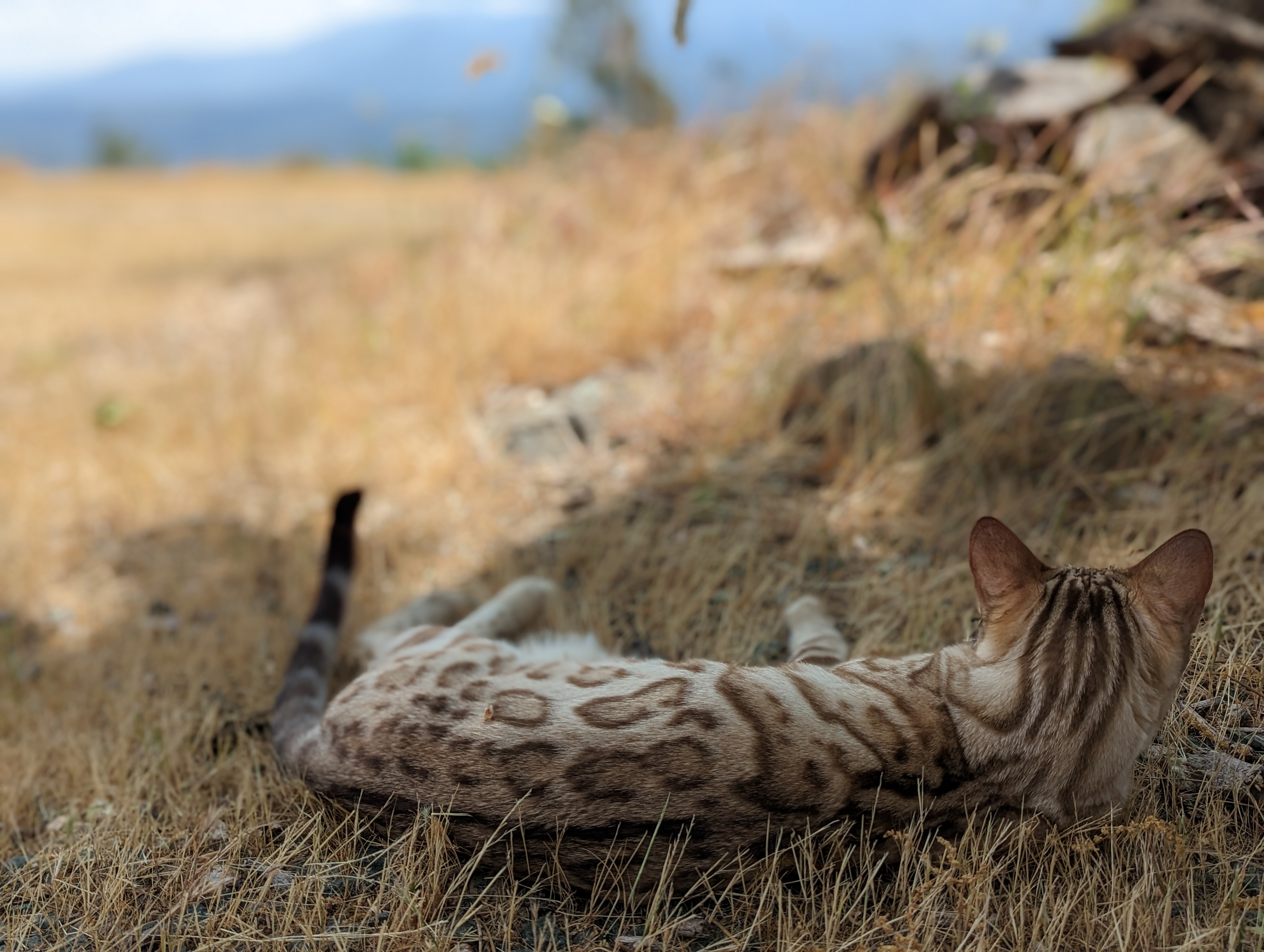 Ree is full sister to Roo. Ree also has that great horizontal flow she got from her mom, Rainforest Chim Chimeree. Ree carries one of the genetic components needed to produce charcoal patterned offspring. She is incredibly sweet and soft spoken. She likes being carried around and will happily purr away when you hold her like a baby. We love the look of her muzzle and she also has a checkered tail! We're very excited to see what she produces with the right male.