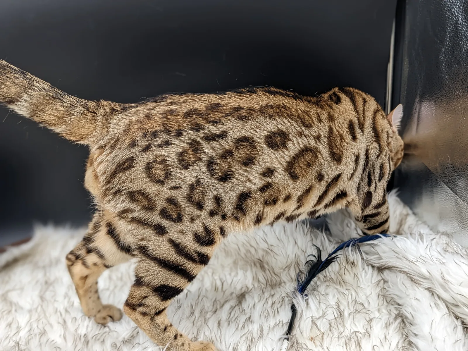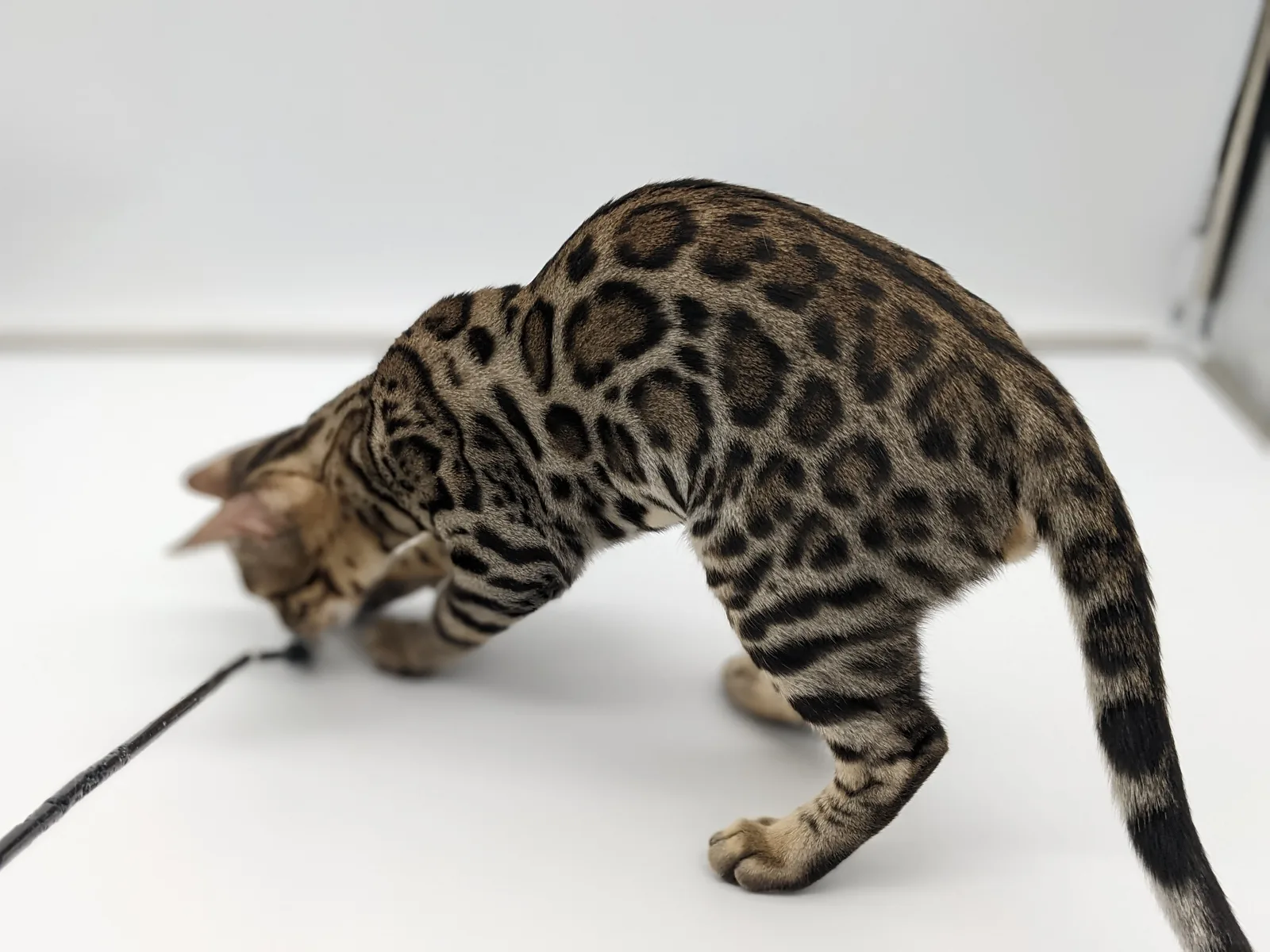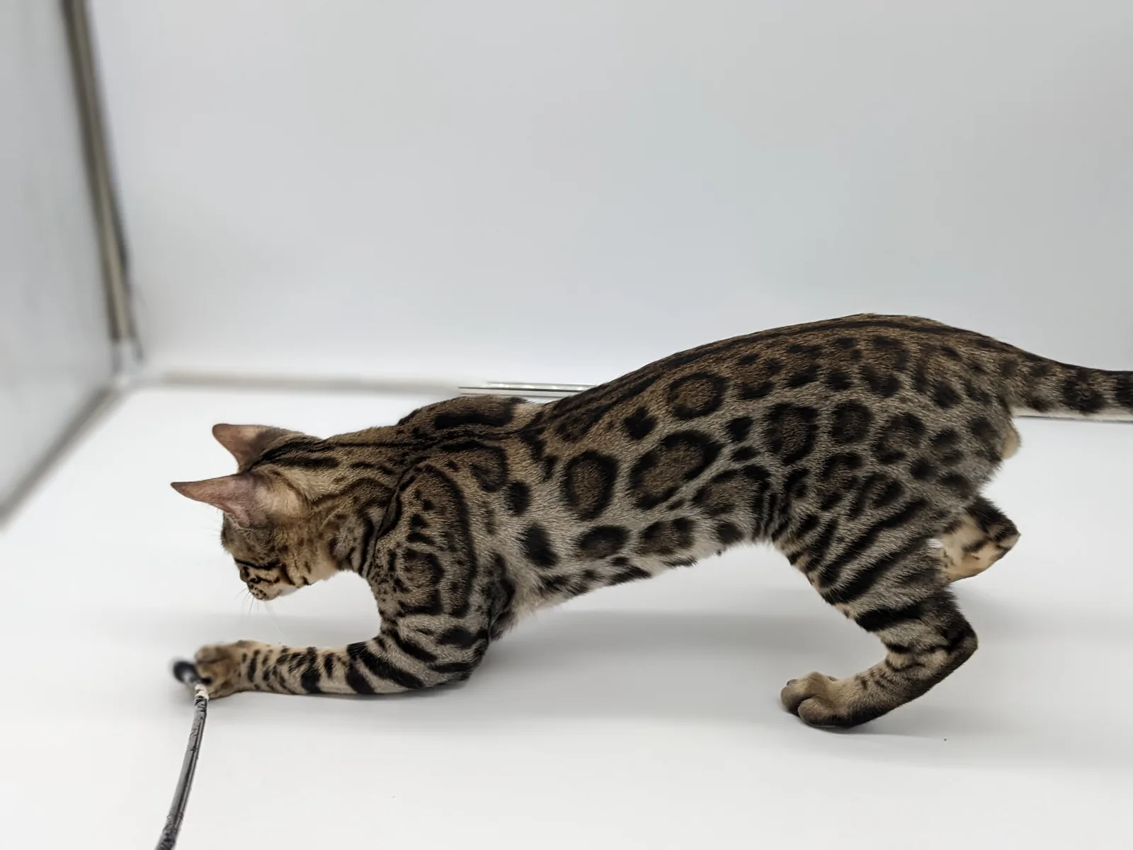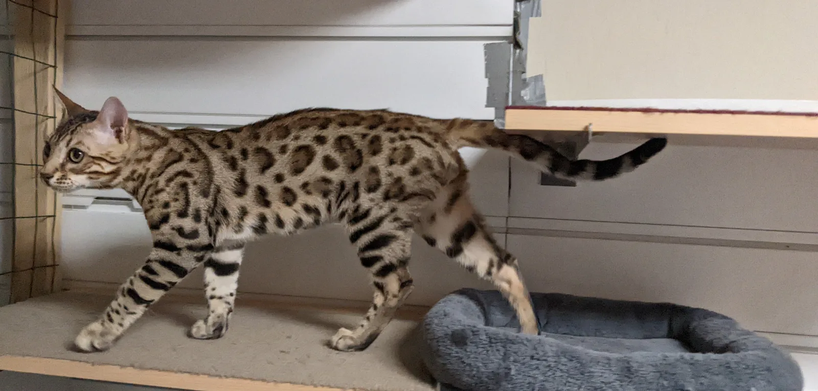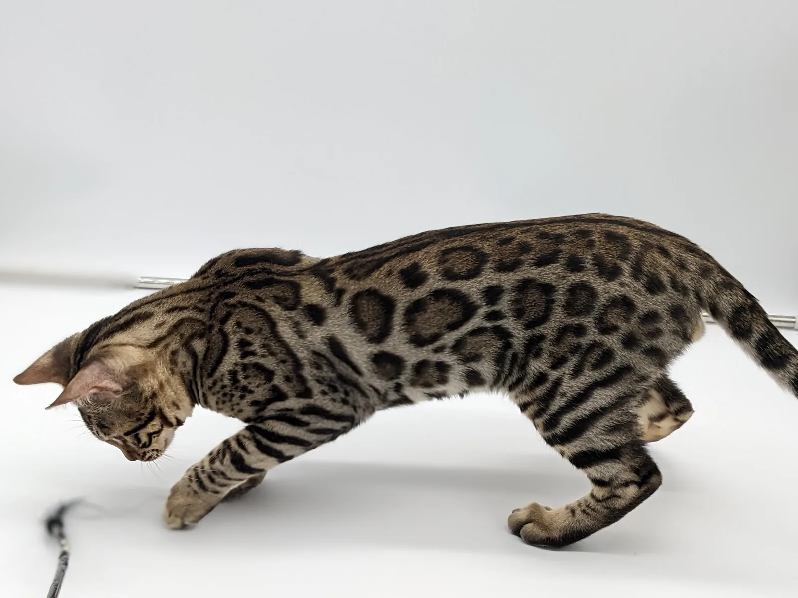 Roo is a super sweet boy and we're very excited to have him as our next homegrown boy at BestView. He inherited some of Rainforest Chim Chimeree's best traits. He has a very nice horizontal flow to his pattern, puffy nose leather, countershading, and his tail is partially rosetted! He also has big paws with big knuckles and is a pretty big boy all around. He has an excellent temperament which we are also excited to pass down to his offspring.