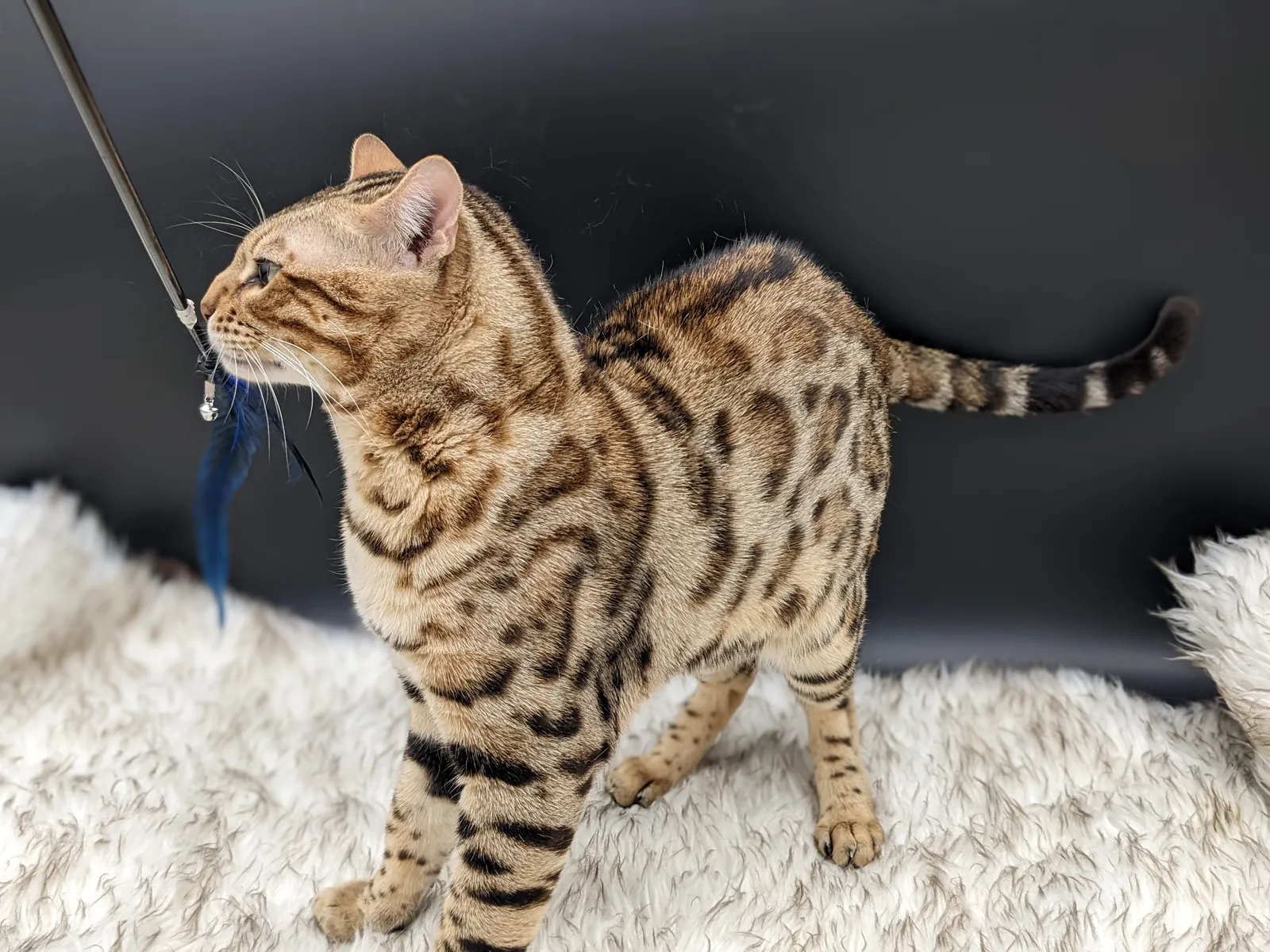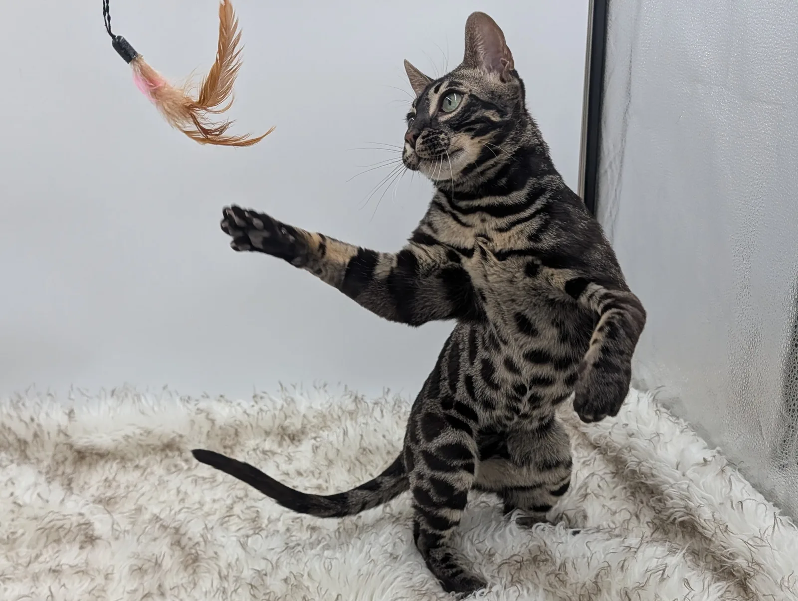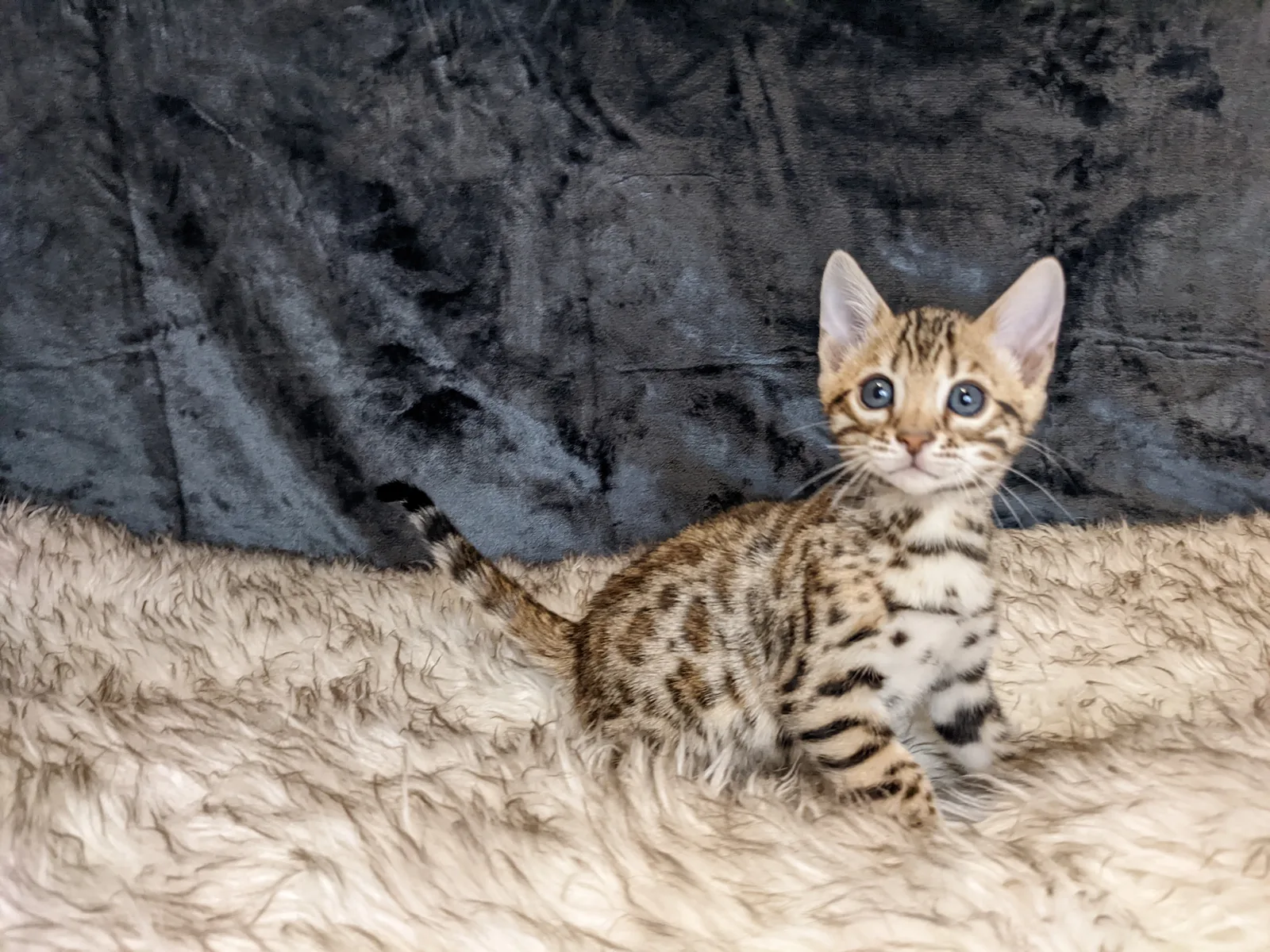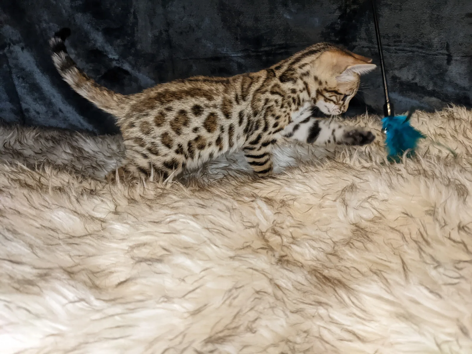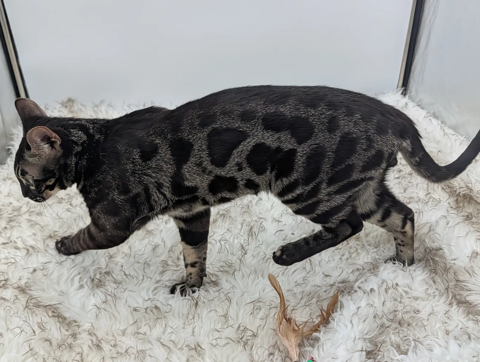 Roo is a super sweet boy and we're very excited to have him as our next homegrown boy at BestView. He inherited some of Rainforest Chim Chimeree's best traits. He has a very nice horizontal flow to his pattern, puffy nose leather, countershading, and his tail is partially rosetted! He also has big paws with big knuckles and is a pretty big boy all around. He has an excellent temperament which we are also excited to pass down to his offspring.