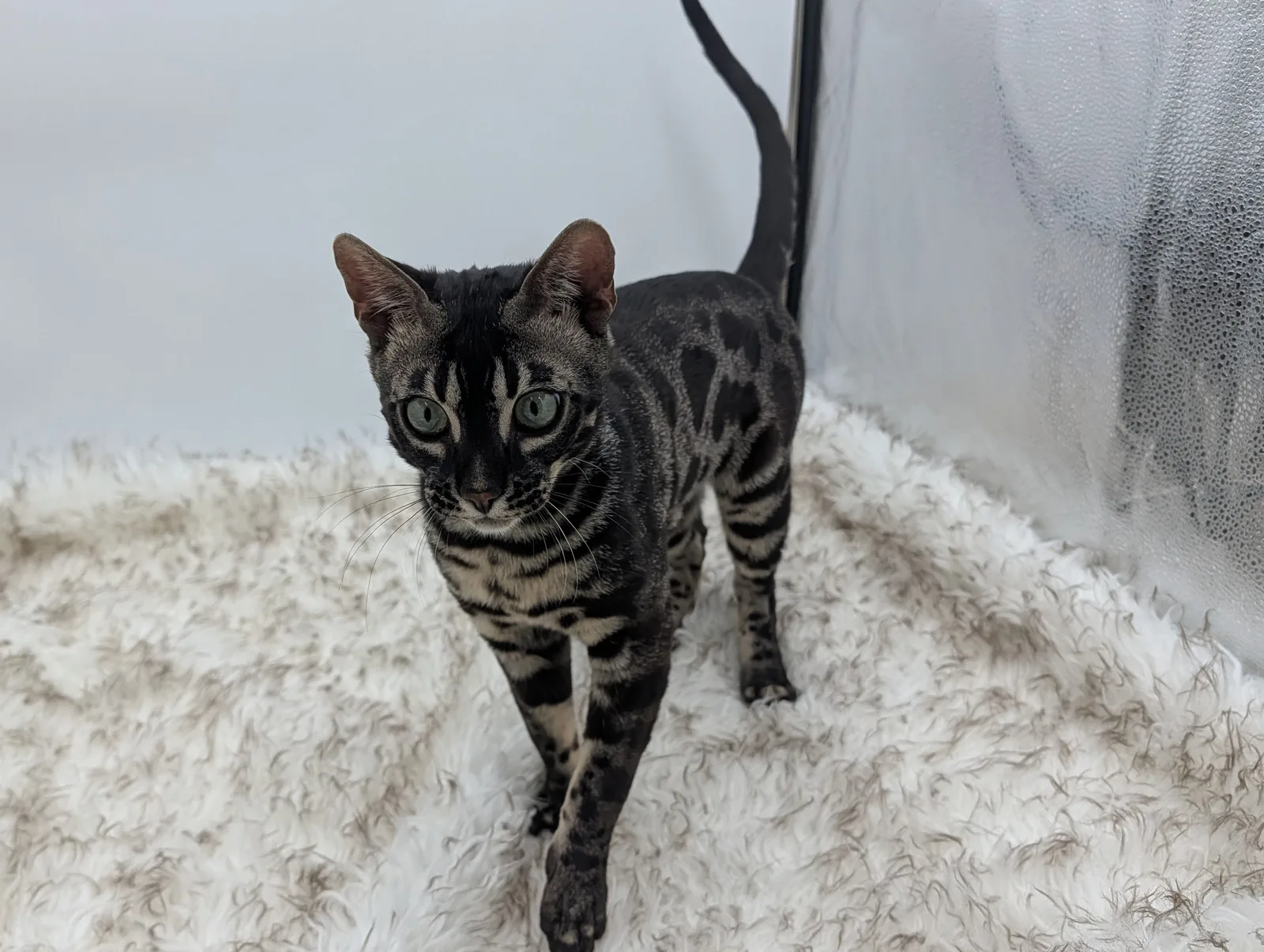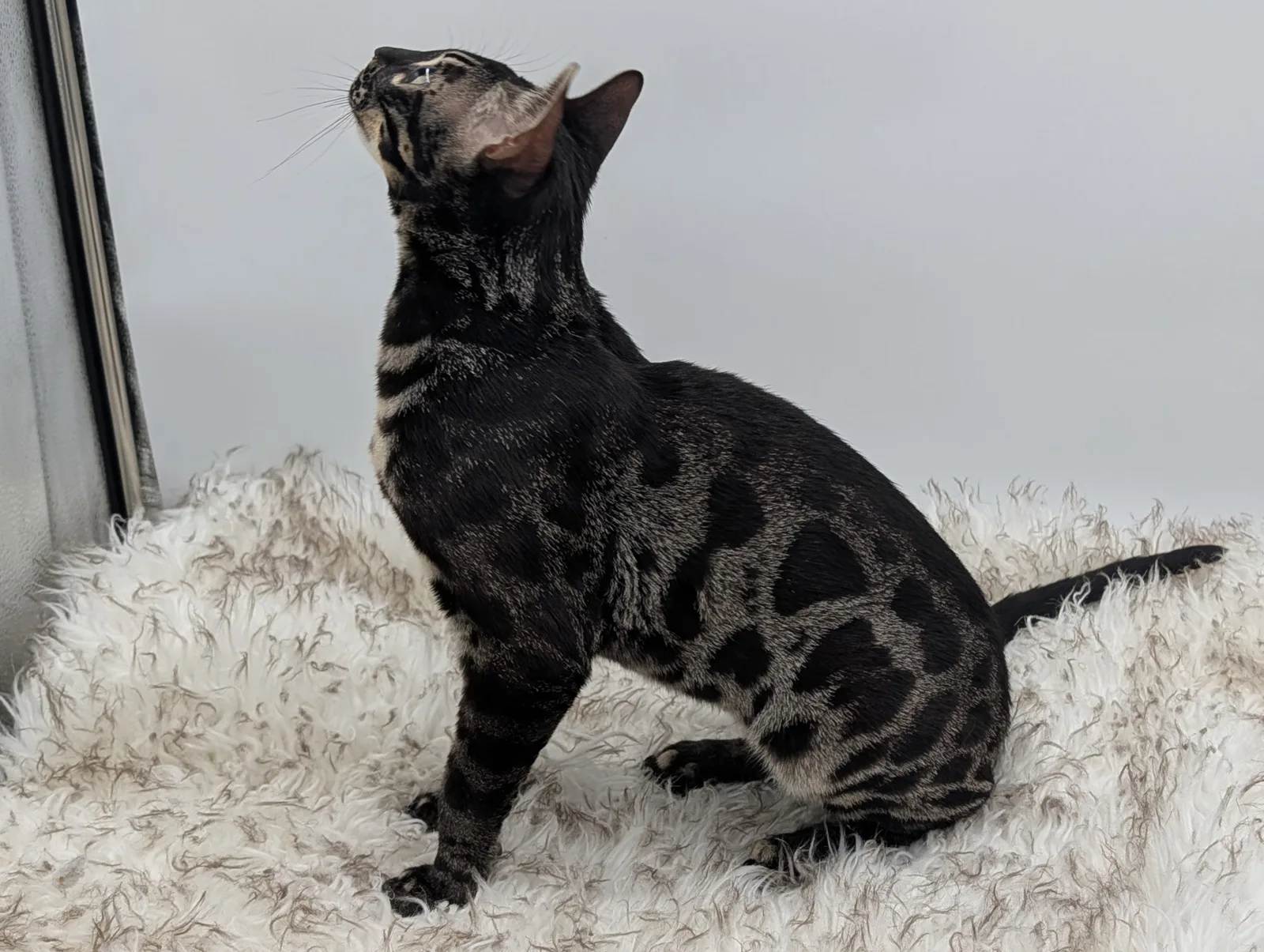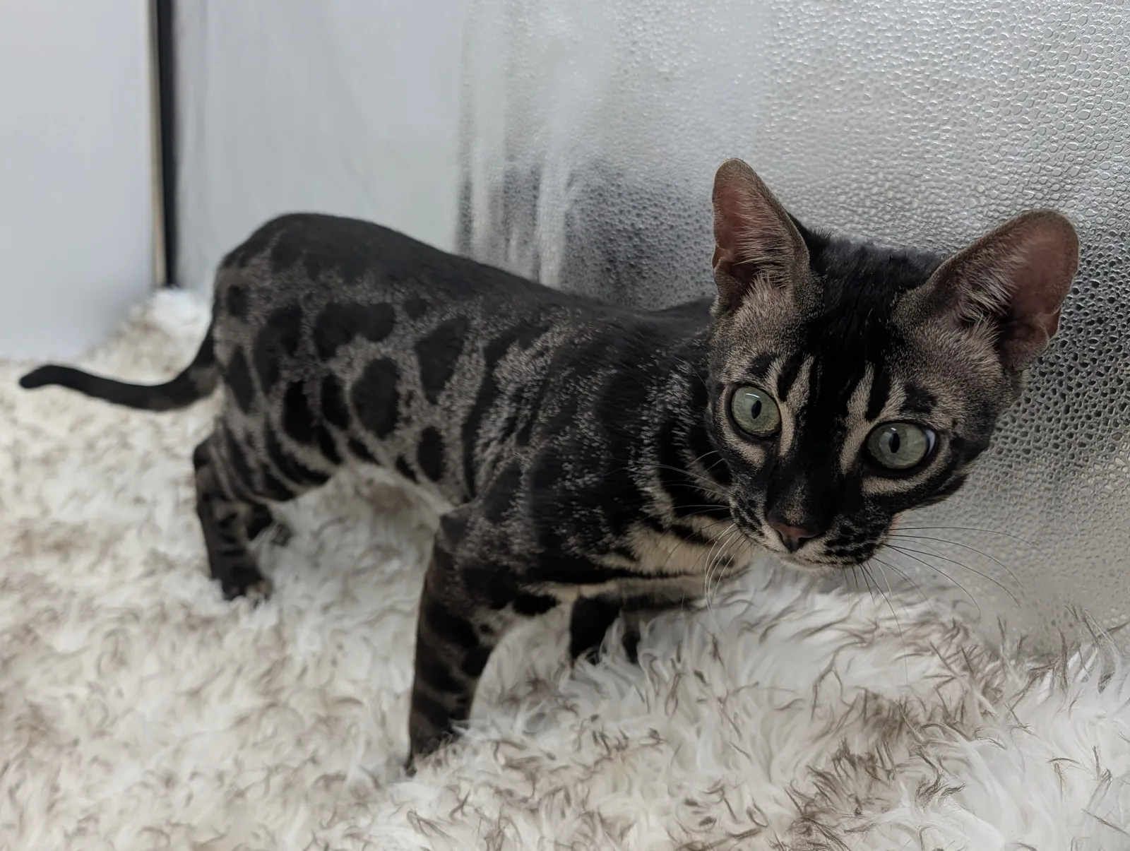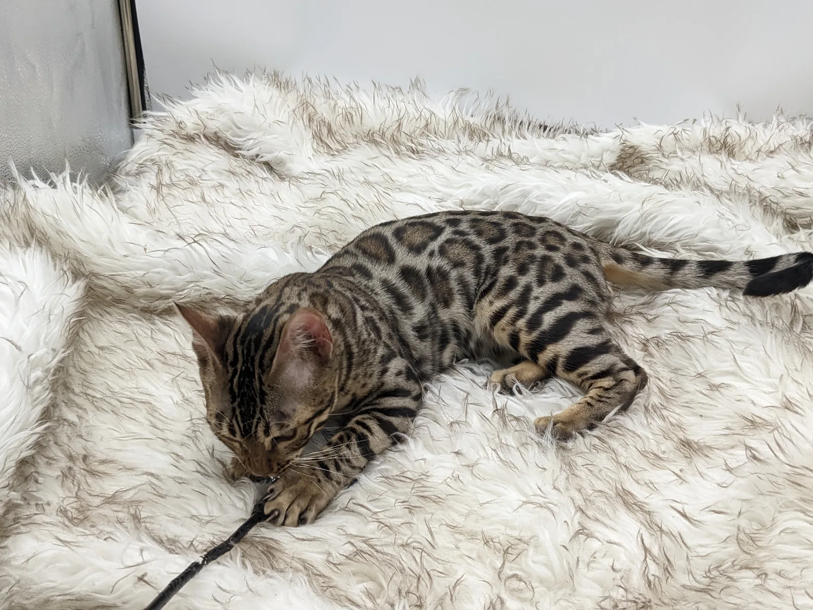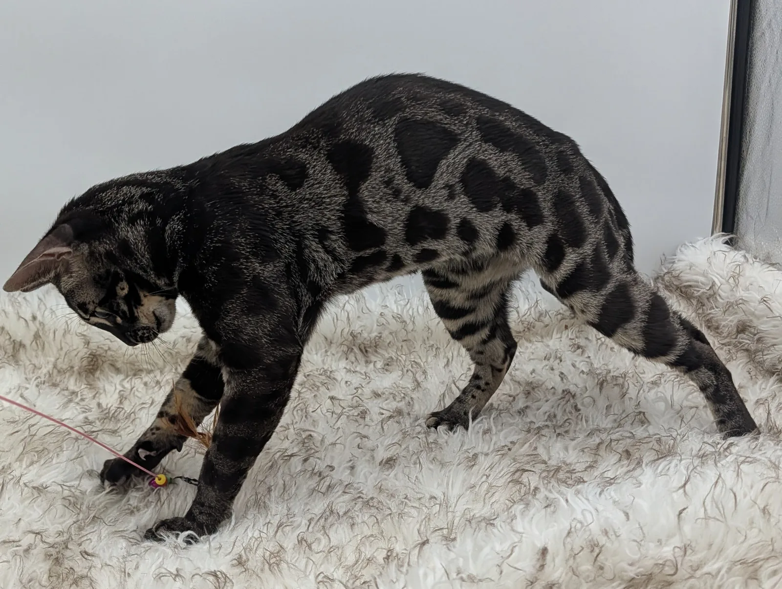 Roo is a super sweet boy and we're very excited to have him as our next homegrown boy at BestView. He inherited some of Rainforest Chim Chimeree's best traits. He has a very nice horizontal flow to his pattern, puffy nose leather, countershading, and his tail is partially rosetted! He also has big paws with big knuckles and is a pretty big boy all around. He has an excellent temperament which we are also excited to pass down to his offspring.