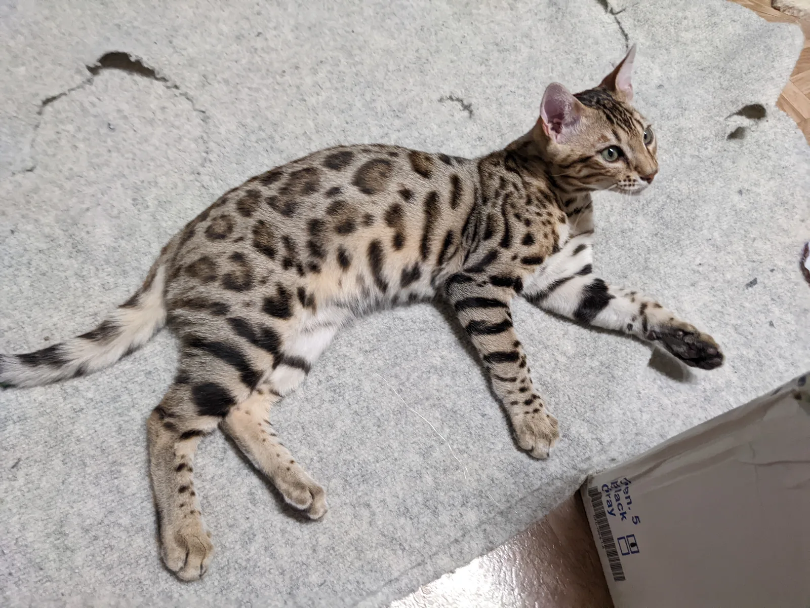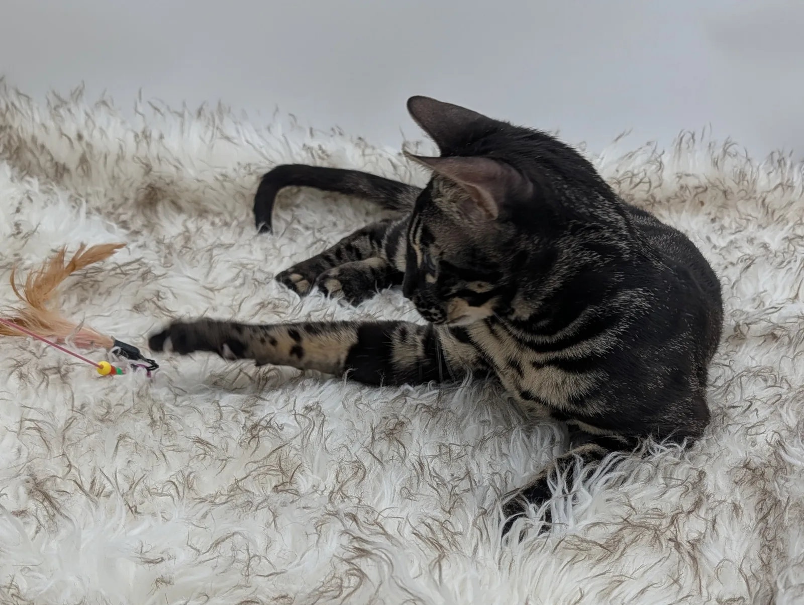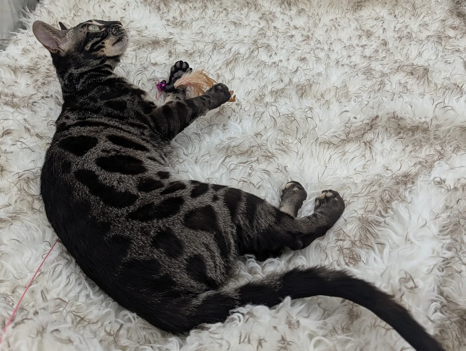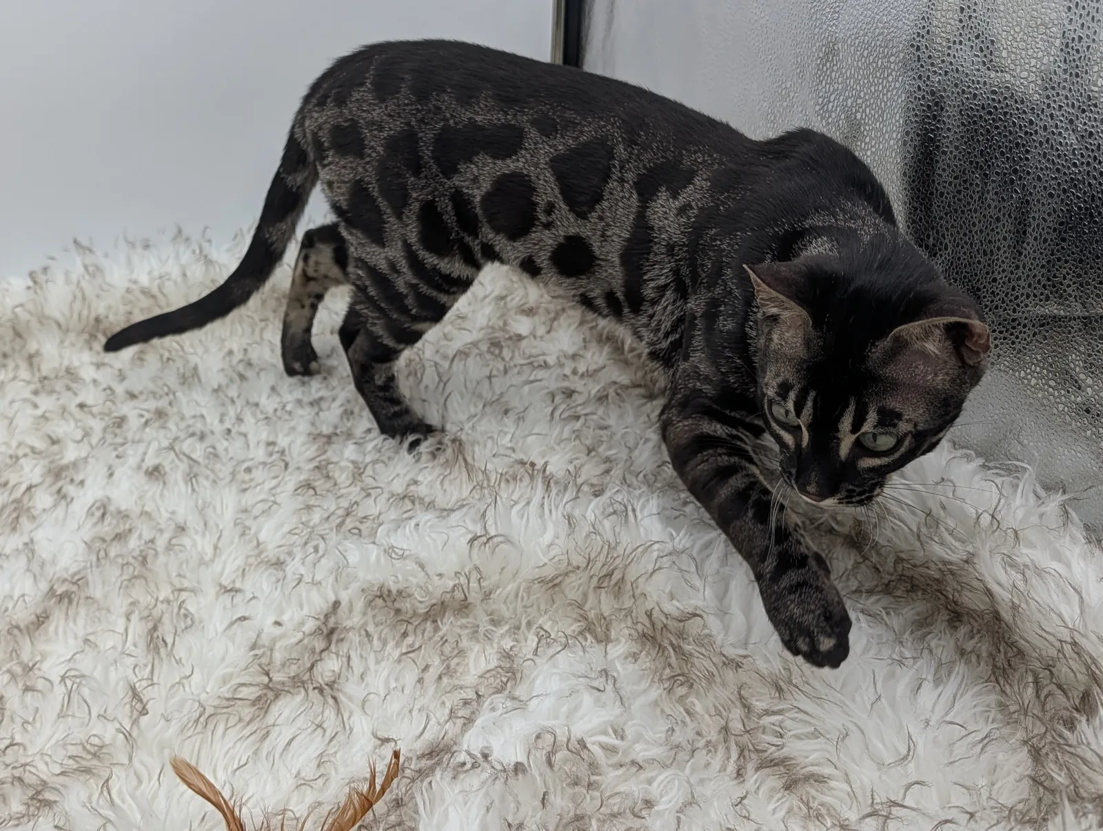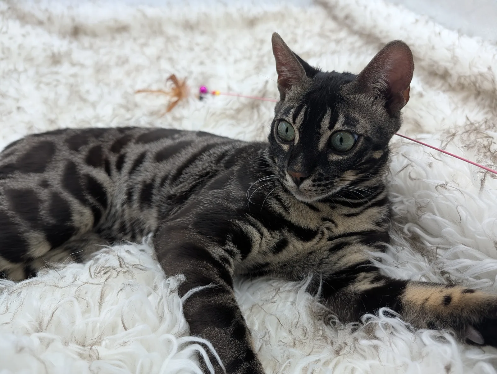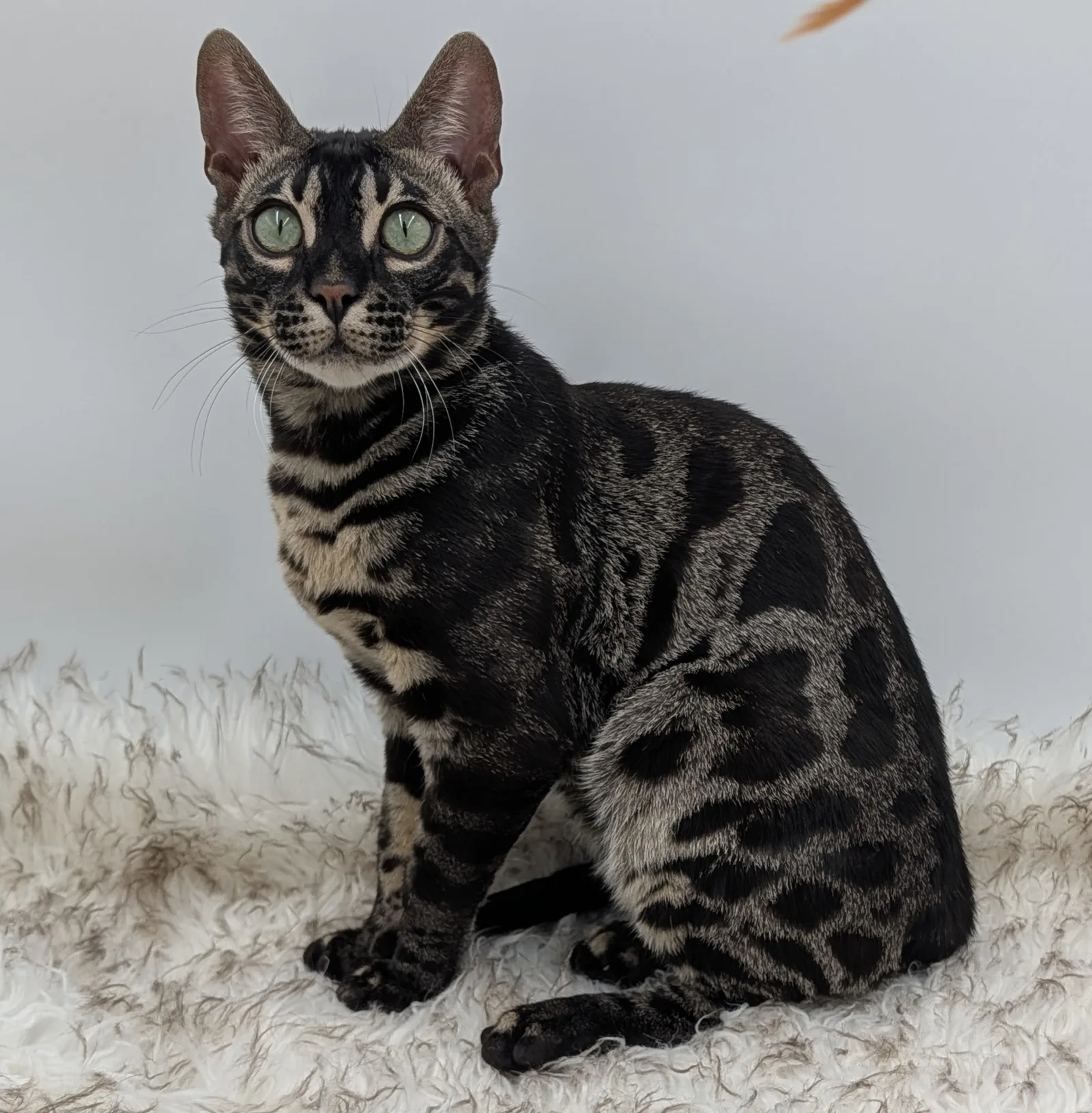 Roo is a super sweet boy and we're very excited to have him as our next homegrown boy at BestView. He inherited some of Rainforest Chim Chimeree's best traits. He has a very nice horizontal flow to his pattern, puffy nose leather, countershading, and his tail is partially rosetted! He also has big paws with big knuckles and is a pretty big boy all around. He has an excellent temperament which we are also excited to pass down to his offspring.