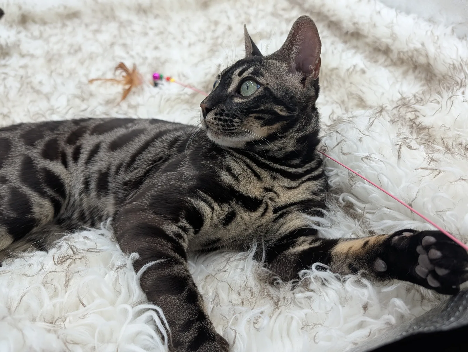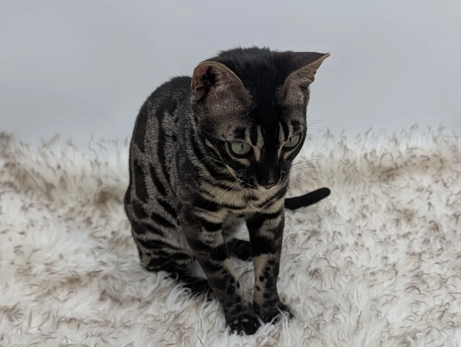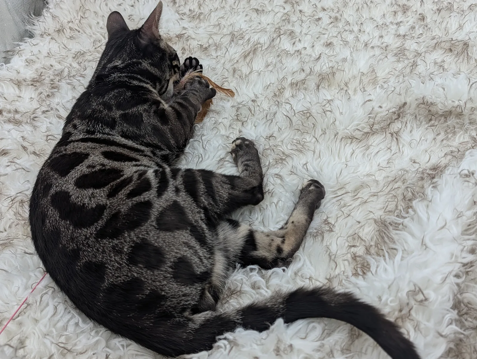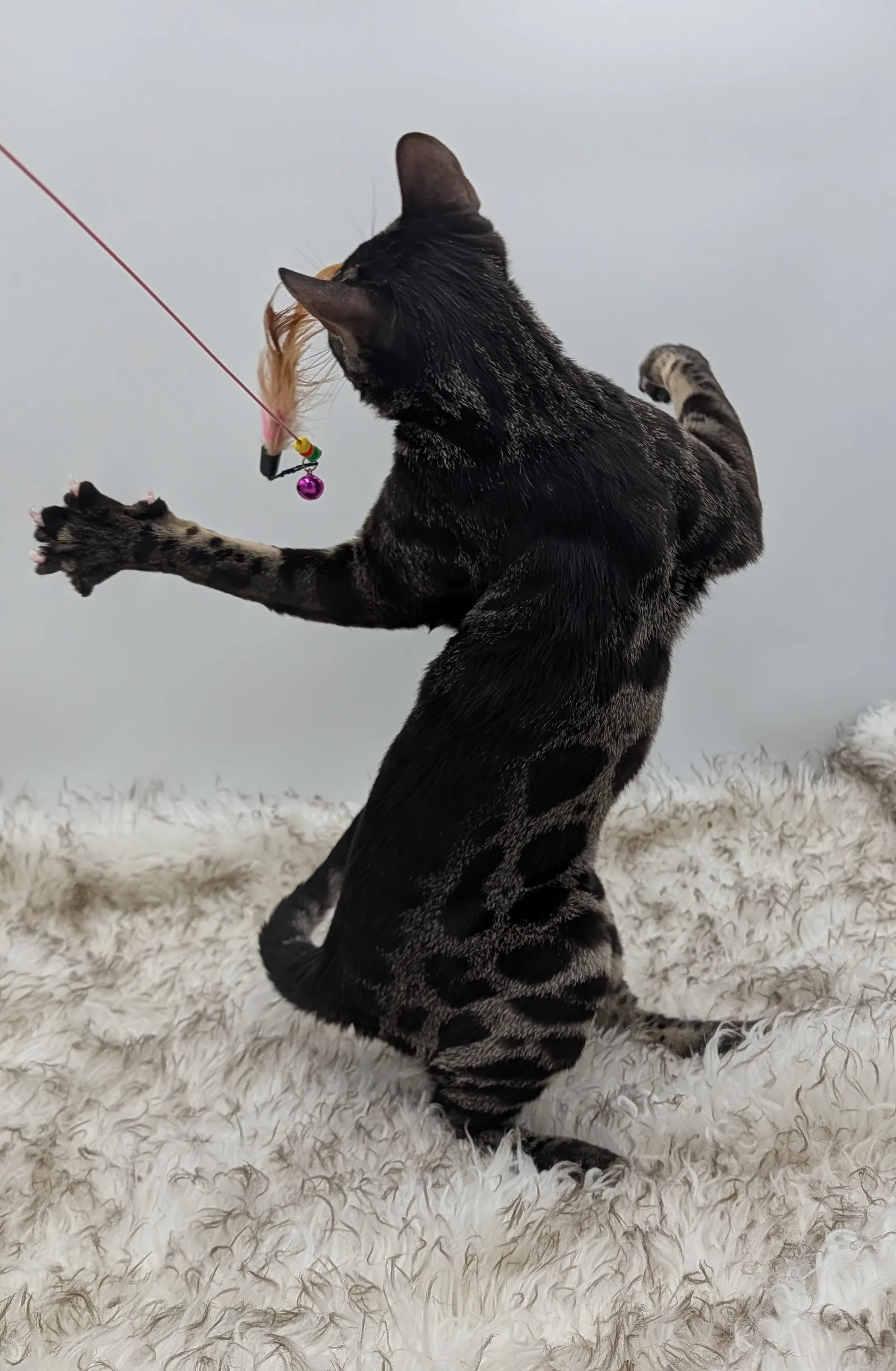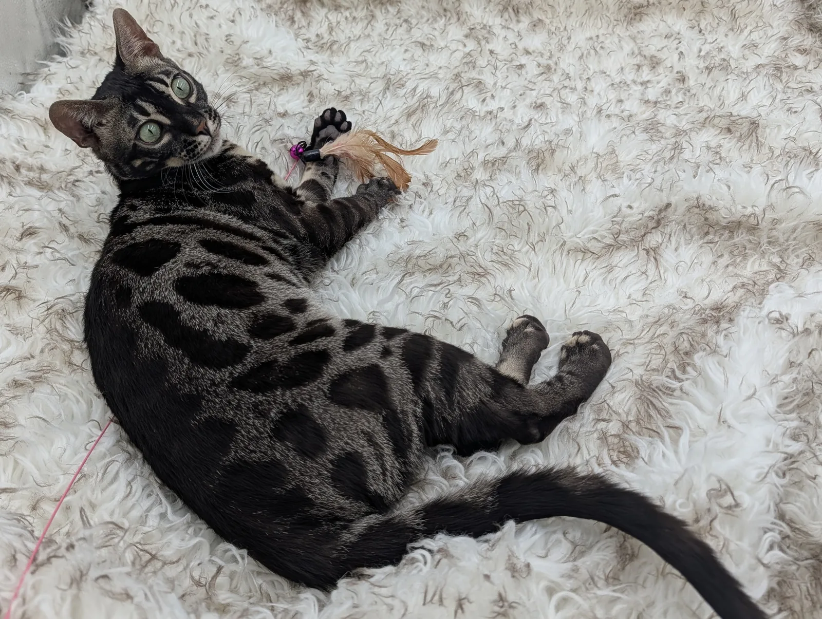 Roo is a super sweet boy and we're very excited to have him as our next homegrown boy at BestView. He inherited some of Rainforest Chim Chimeree's best traits. He has a very nice horizontal flow to his pattern, puffy nose leather, countershading, and his tail is partially rosetted! He also has big paws with big knuckles and is a pretty big boy all around. He has an excellent temperament which we are also excited to pass down to his offspring.