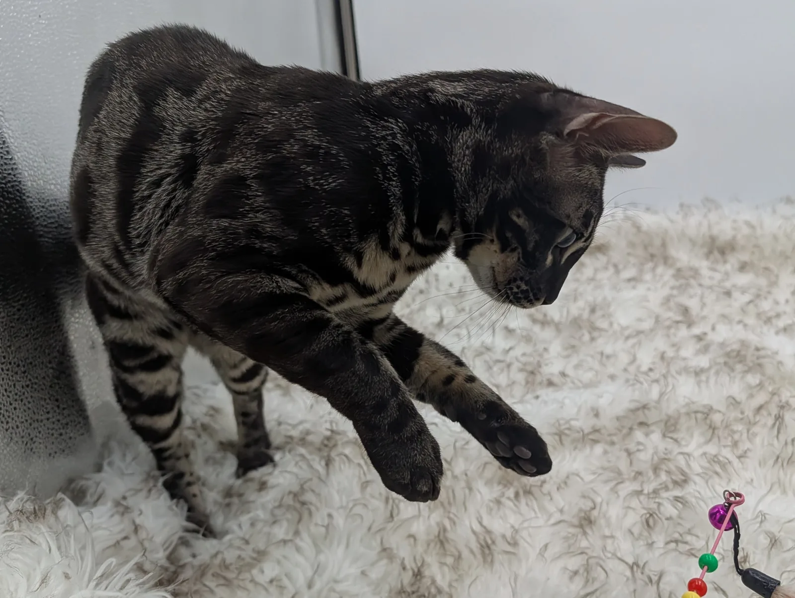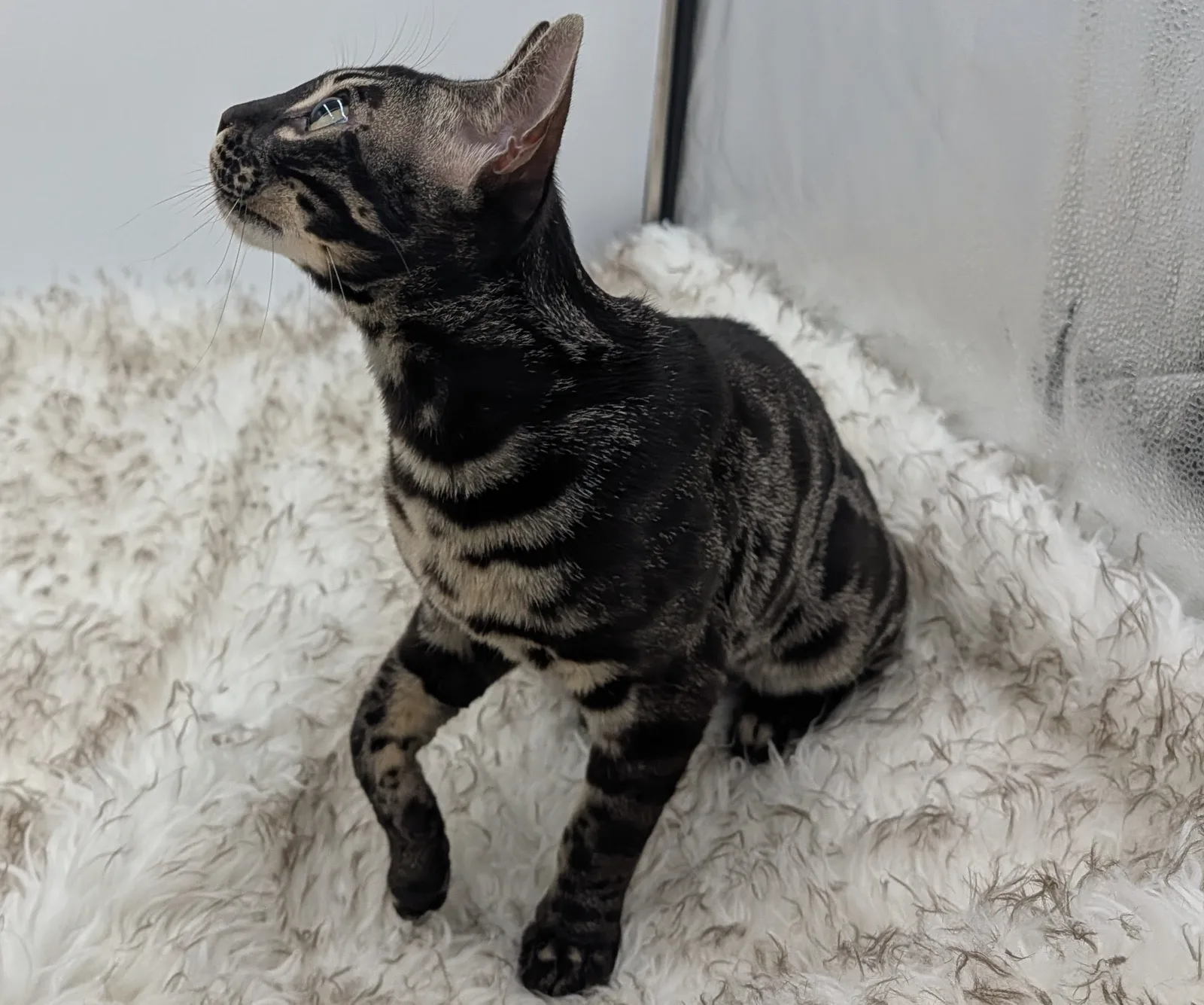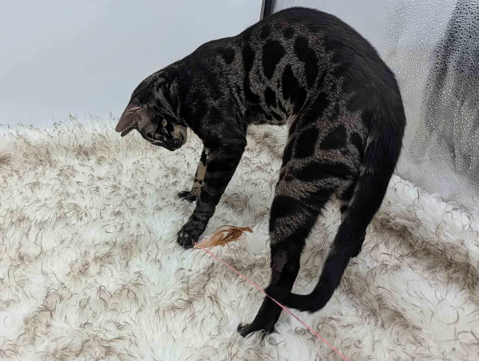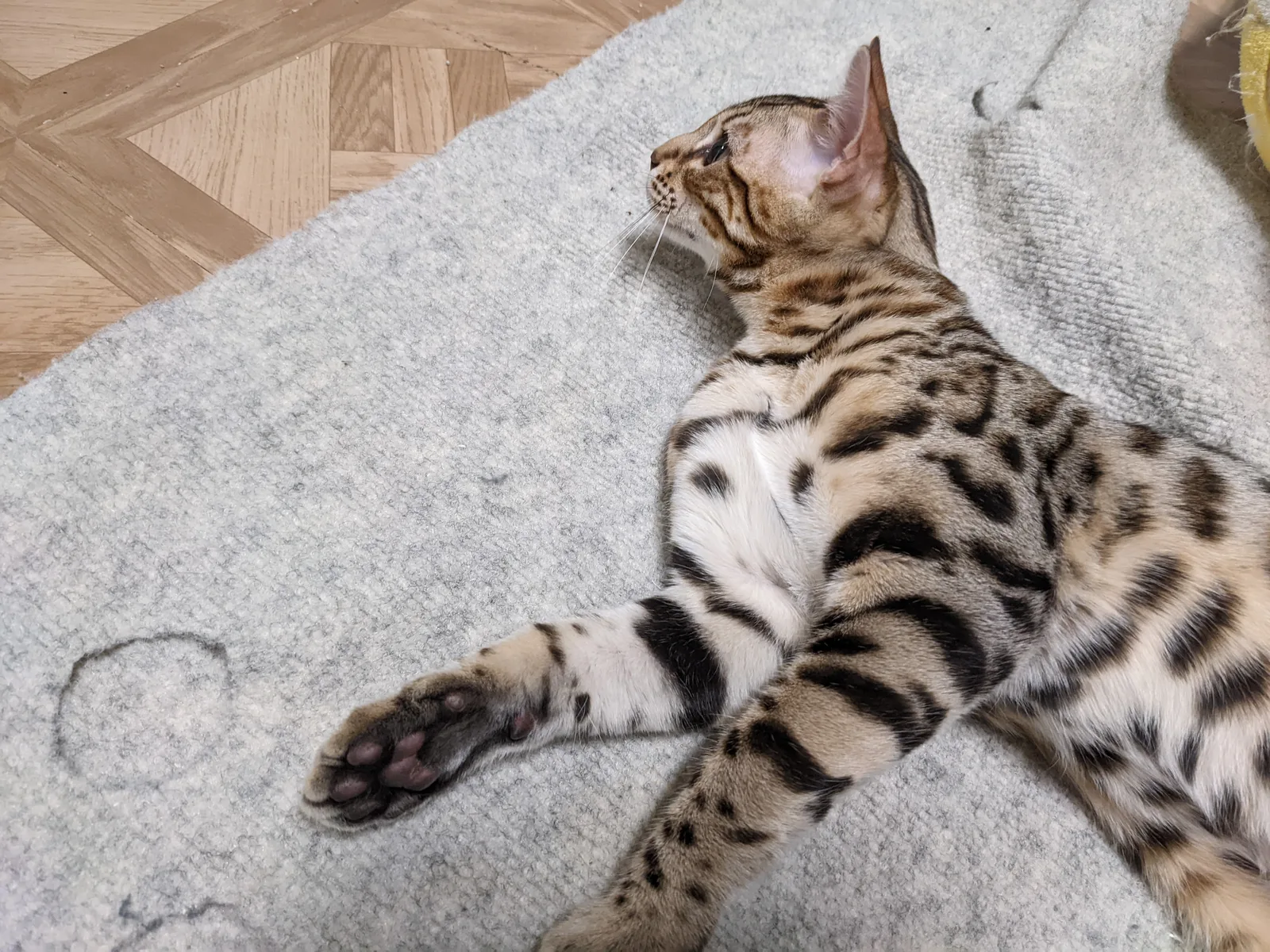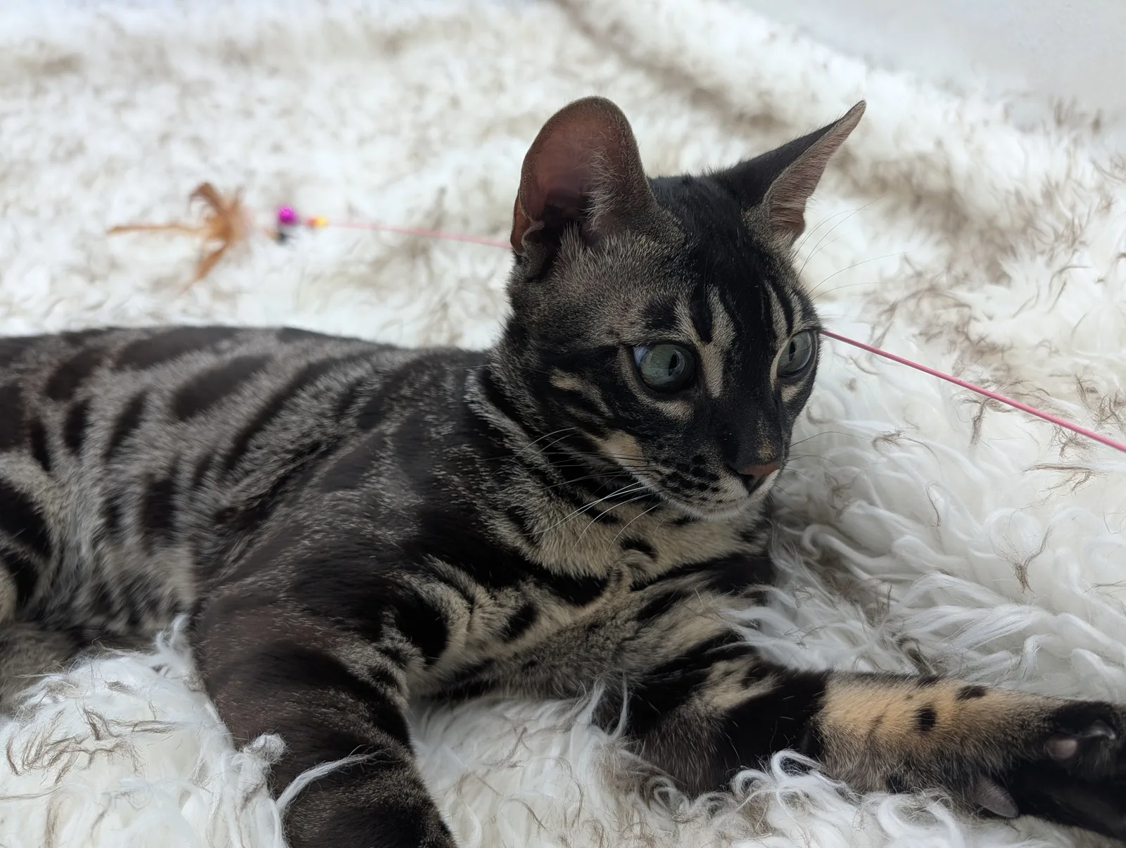 Roo is a super sweet boy and we're very excited to have him as our next homegrown boy at BestView. He inherited some of Rainforest Chim Chimeree's best traits. He has a very nice horizontal flow to his pattern, puffy nose leather, countershading, and his tail is partially rosetted! He also has big paws with big knuckles and is a pretty big boy all around. He has an excellent temperament which we are also excited to pass down to his offspring.