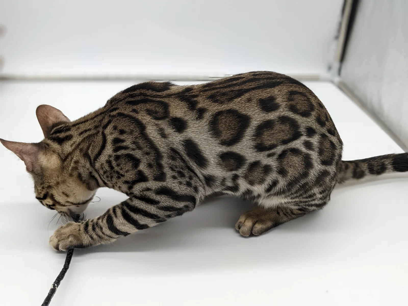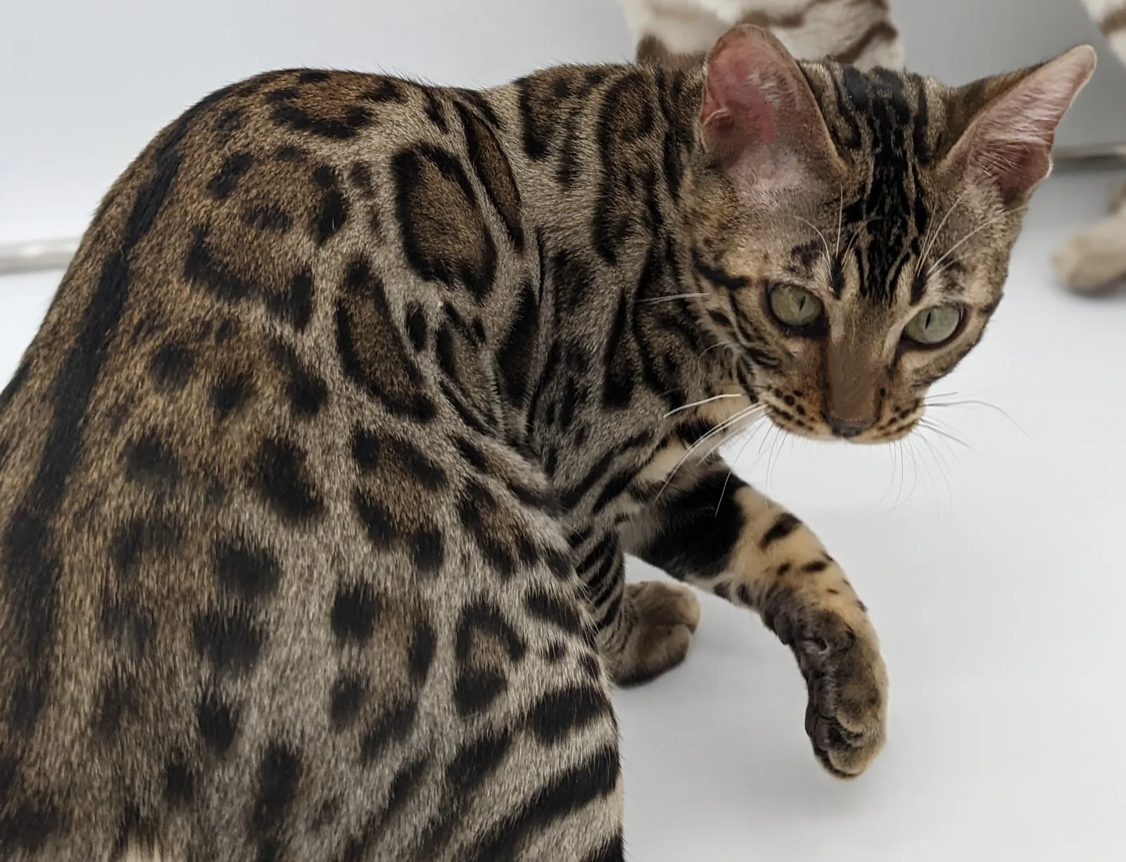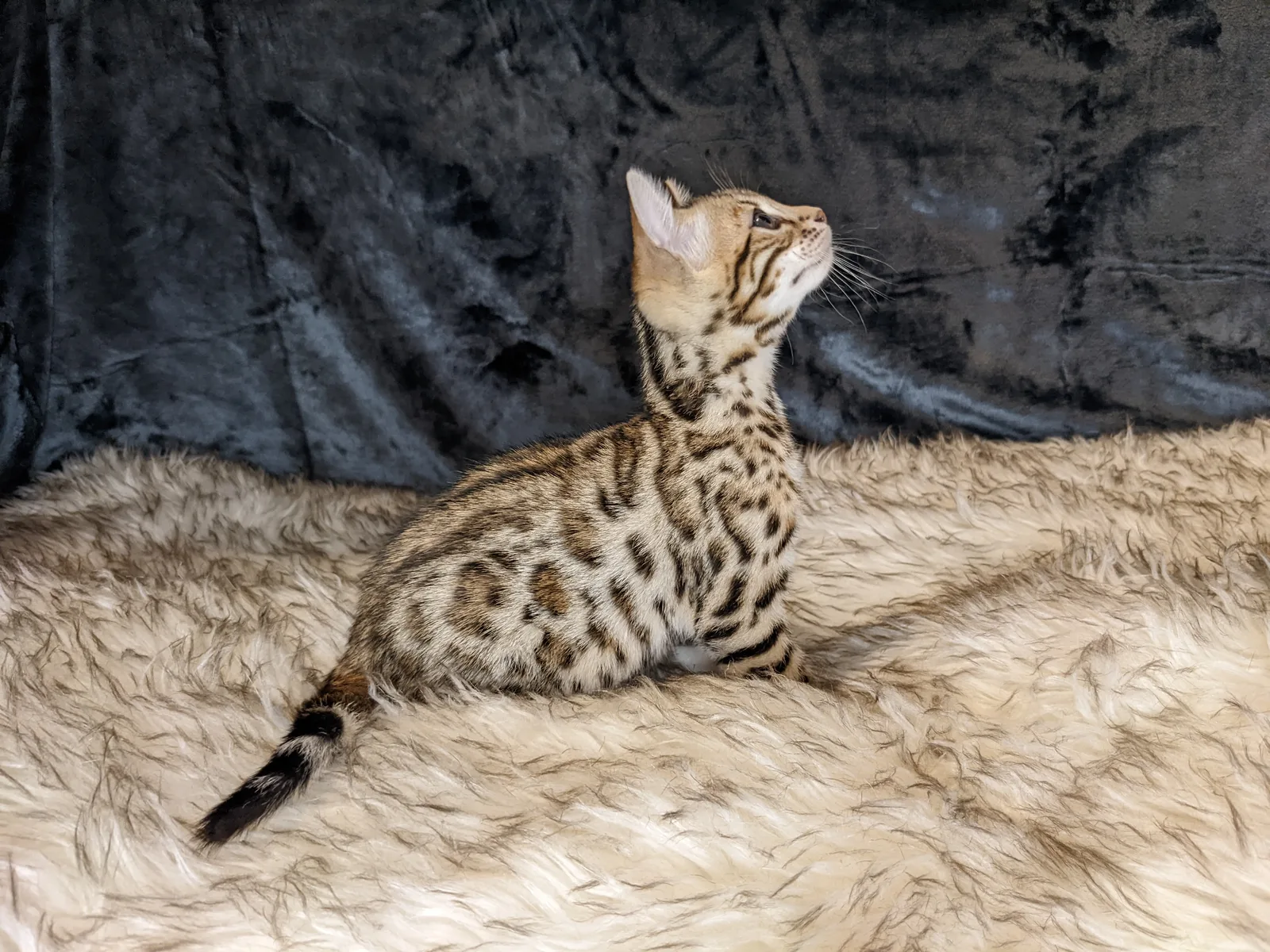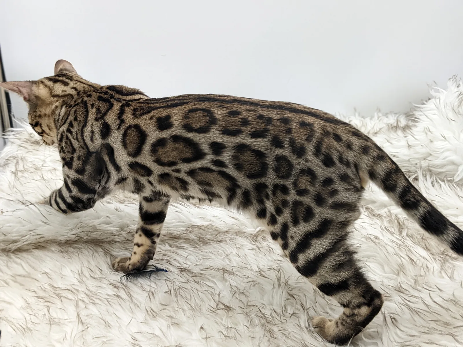 Roo is a super sweet boy and we're very excited to have him as our next homegrown boy at BestView. He inherited some of Rainforest Chim Chimeree's best traits. He has a very nice horizontal flow to his pattern, puffy nose leather, countershading, and his tail is partially rosetted! He also has big paws with big knuckles and is a pretty big boy all around. He has an excellent temperament which we are also excited to pass down to his offspring.