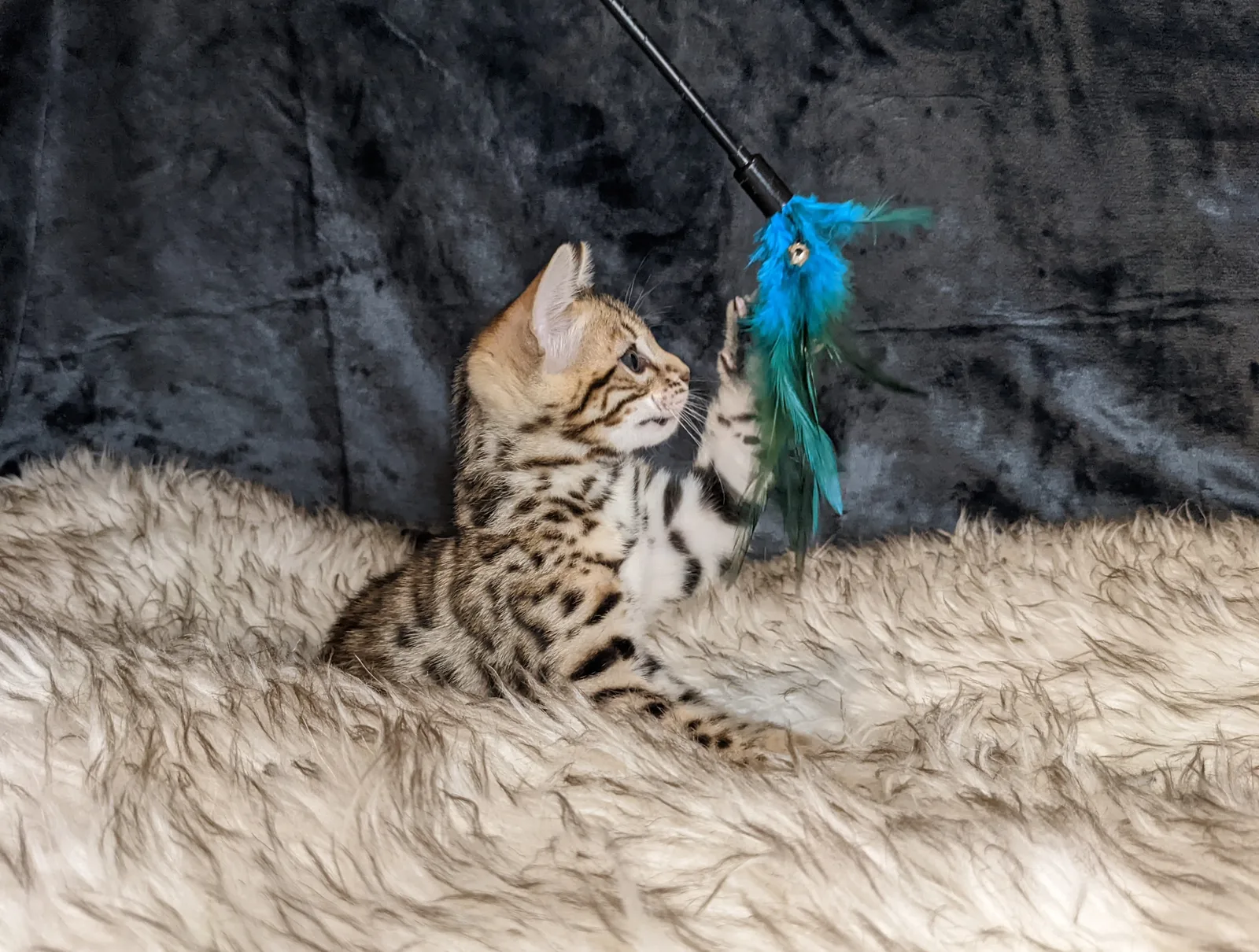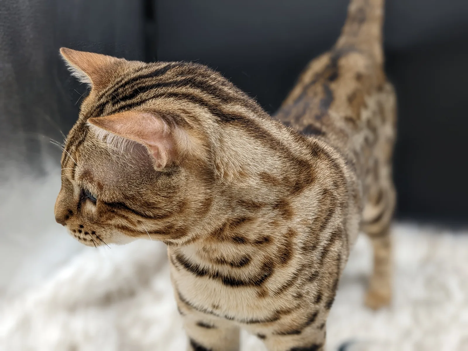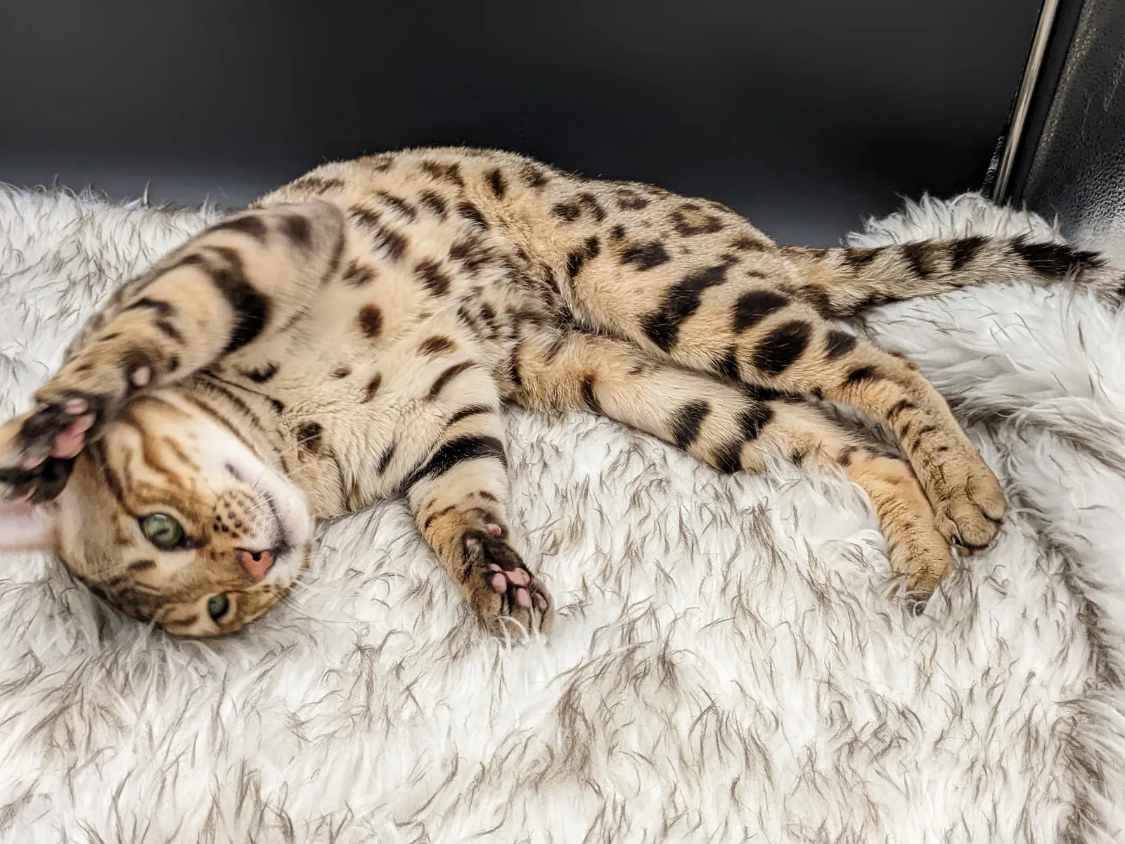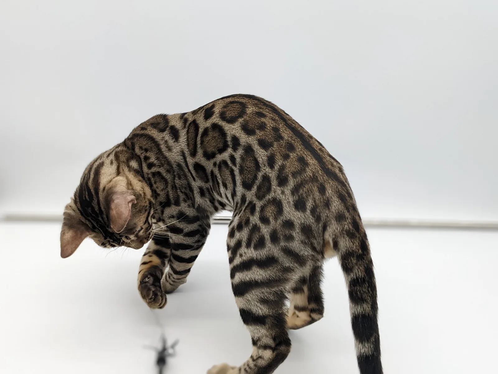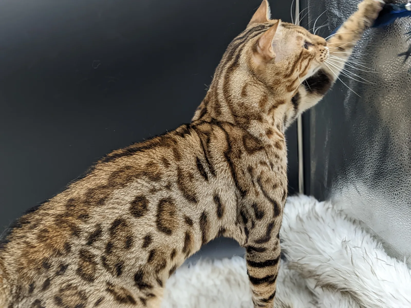 Roo is a super sweet boy and we're very excited to have him as our next homegrown boy at BestView. He inherited some of Rainforest Chim Chimeree's best traits. He has a very nice horizontal flow to his pattern, puffy nose leather, countershading, and his tail is partially rosetted! He also has big paws with big knuckles and is a pretty big boy all around. He has an excellent temperament which we are also excited to pass down to his offspring.