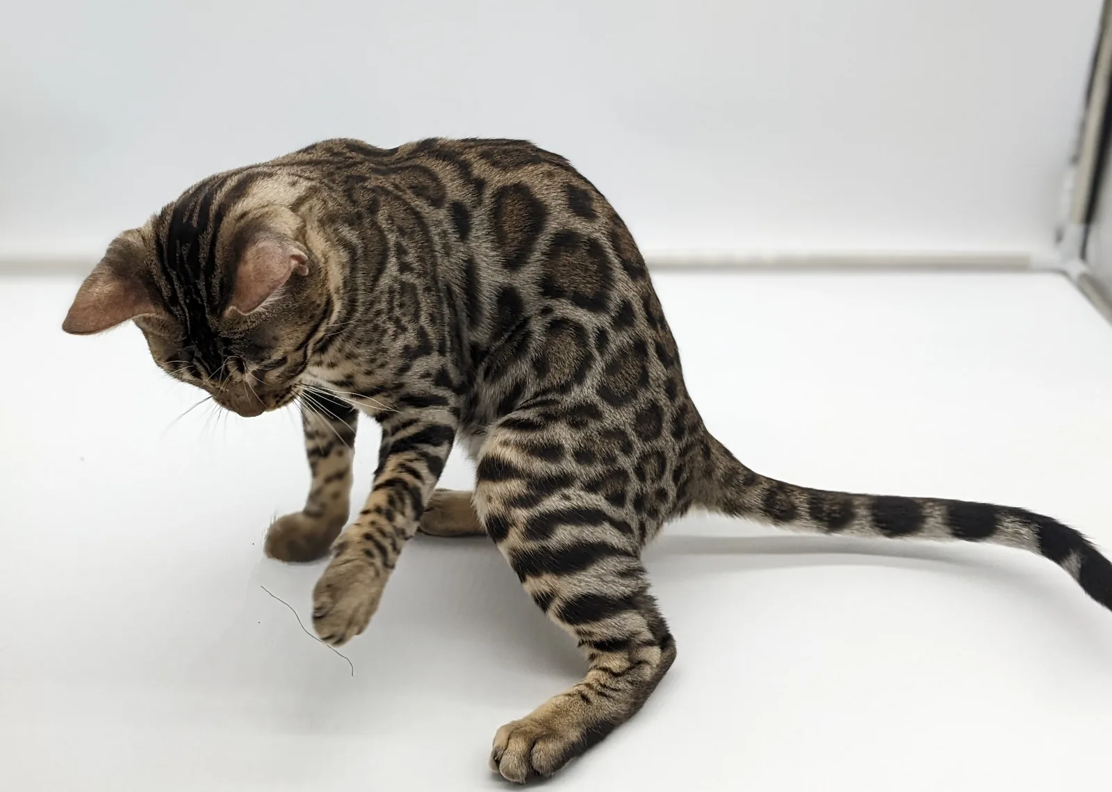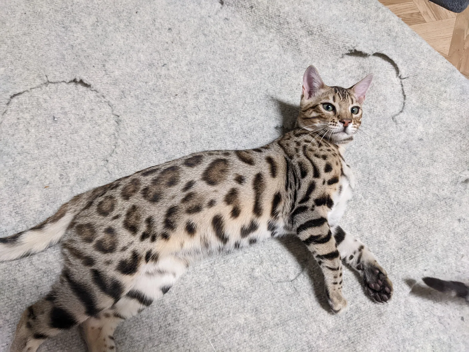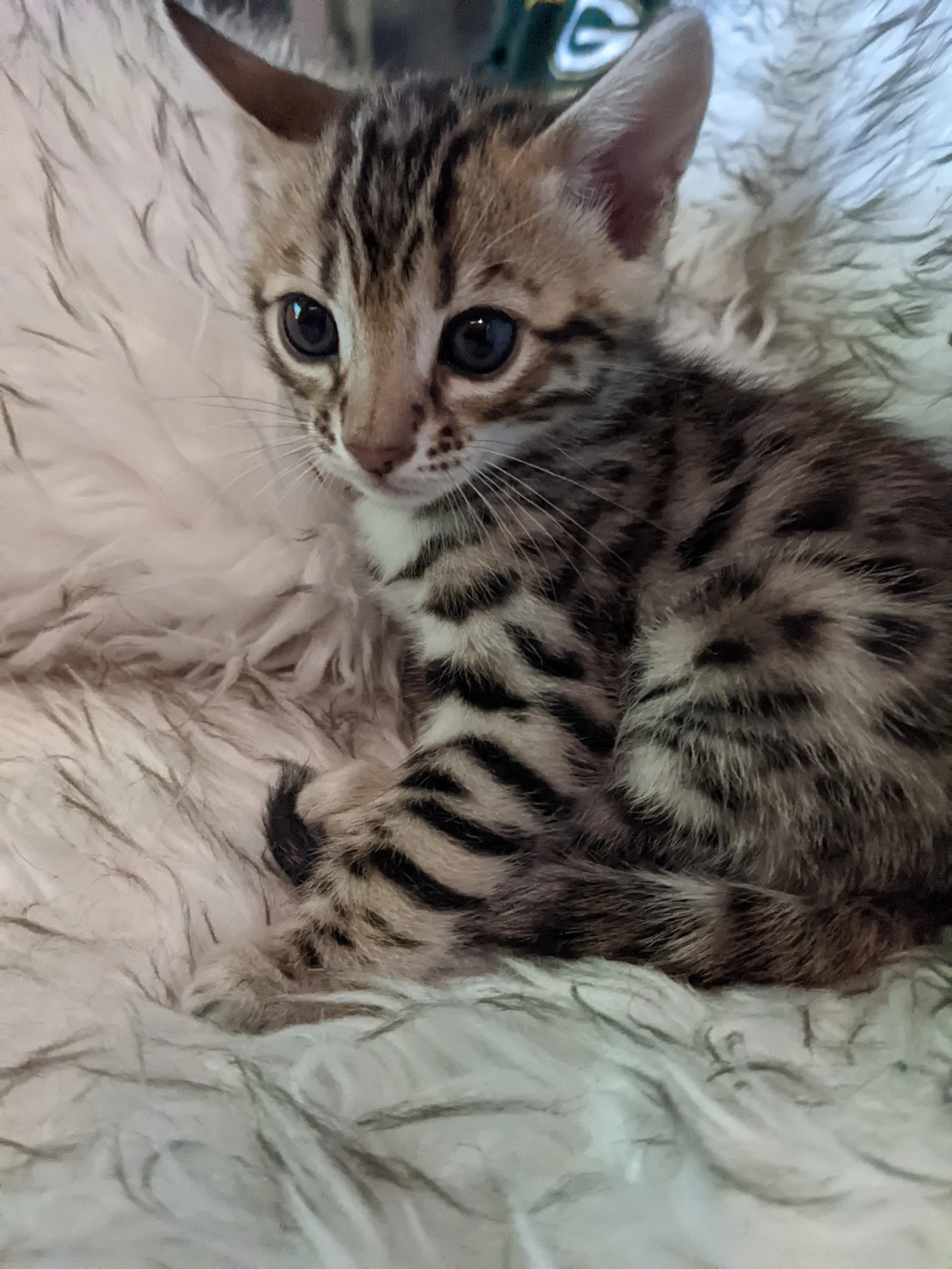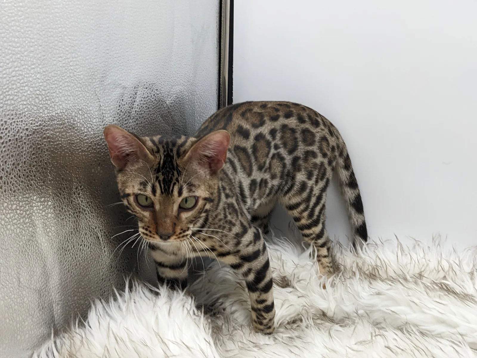 Roo is a super sweet boy and we're very excited to have him as our next homegrown boy at BestView. He inherited some of Rainforest Chim Chimeree's best traits. He has a very nice horizontal flow to his pattern, puffy nose leather, countershading, and his tail is partially rosetted! He also has big paws with big knuckles and is a pretty big boy all around. He has an excellent temperament which we are also excited to pass down to his offspring.