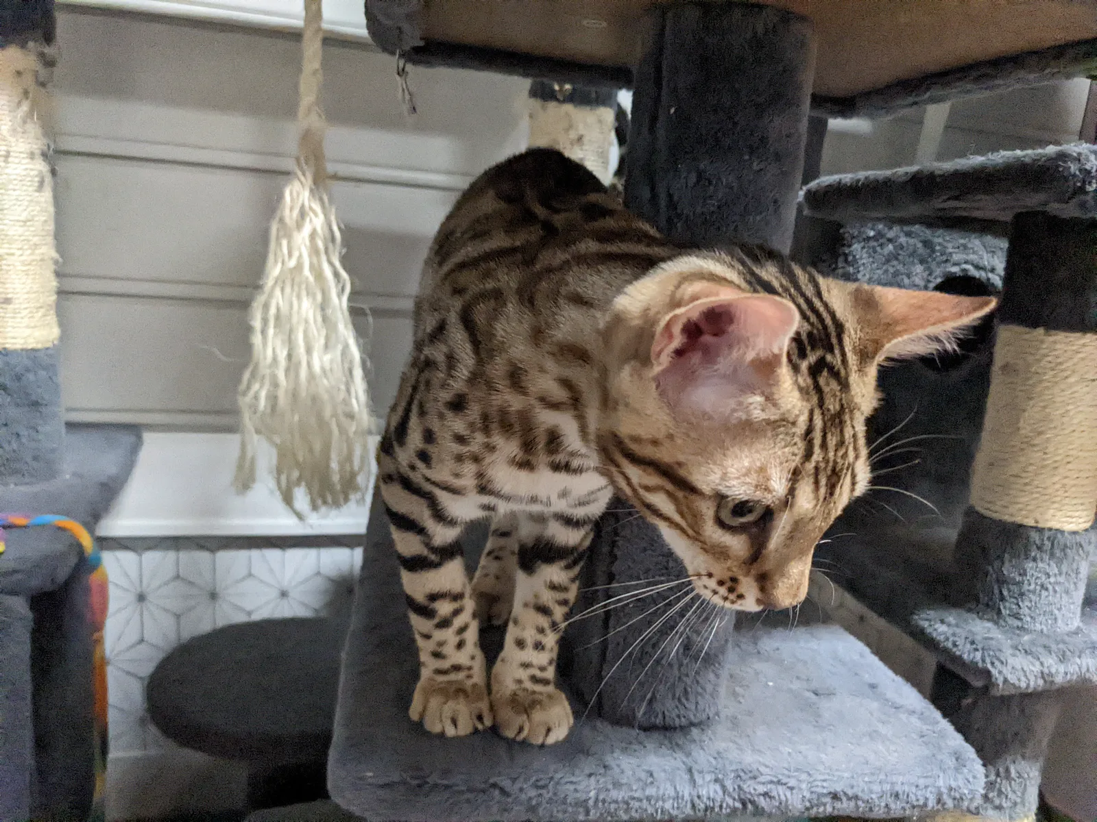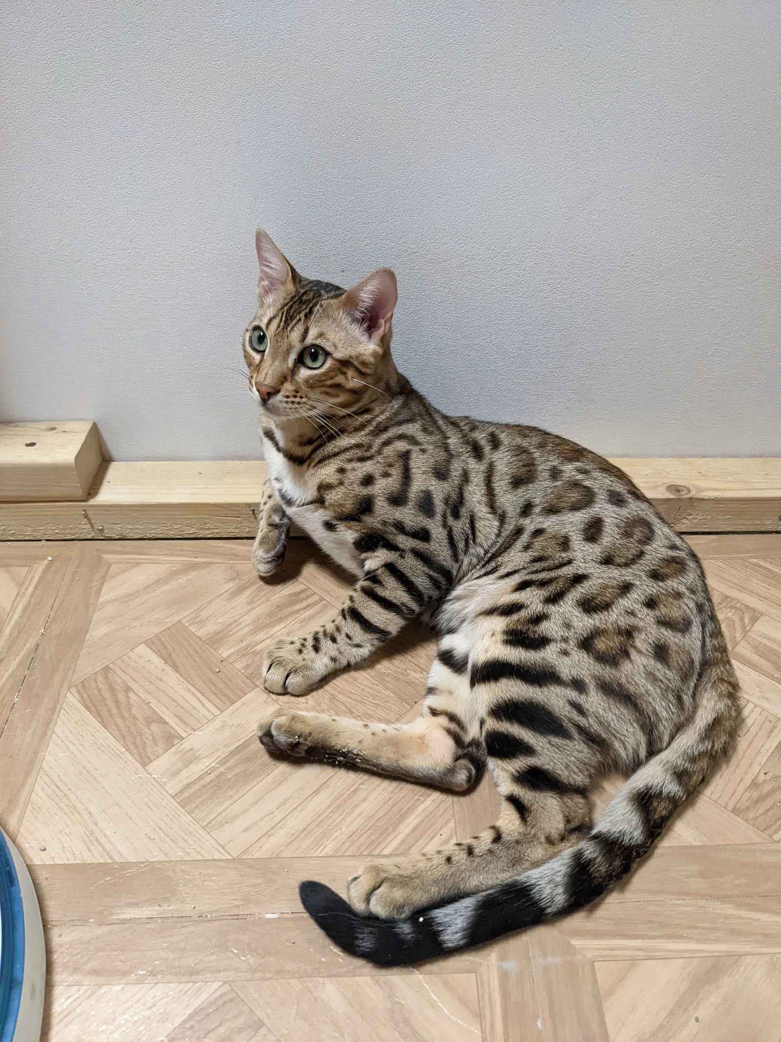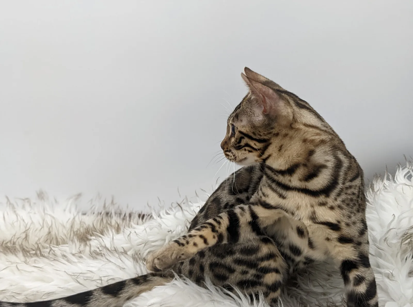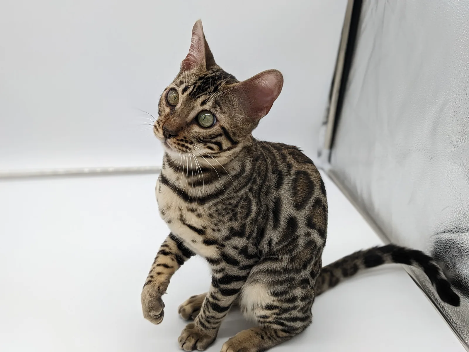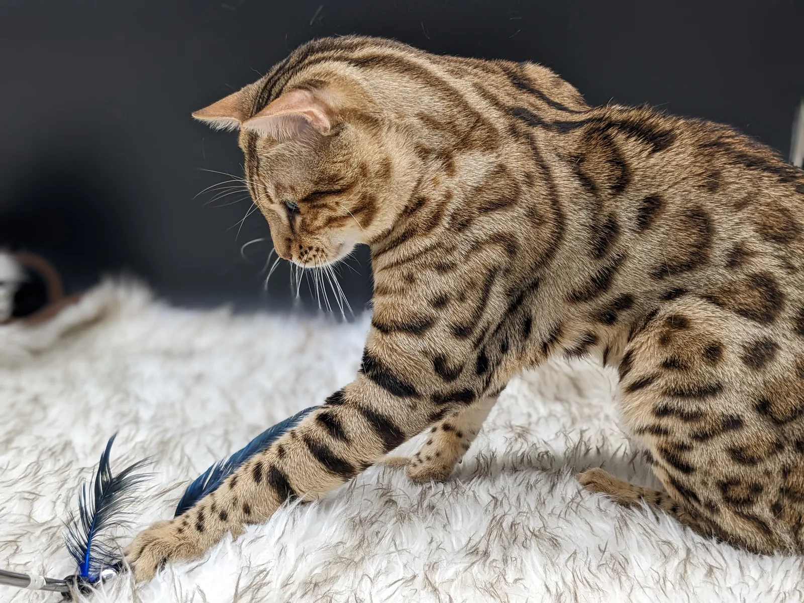 Roo is a super sweet boy and we're very excited to have him as our next homegrown boy at BestView. He inherited some of Rainforest Chim Chimeree's best traits. He has a very nice horizontal flow to his pattern, puffy nose leather, countershading, and his tail is partially rosetted! He also has big paws with big knuckles and is a pretty big boy all around. He has an excellent temperament which we are also excited to pass down to his offspring.